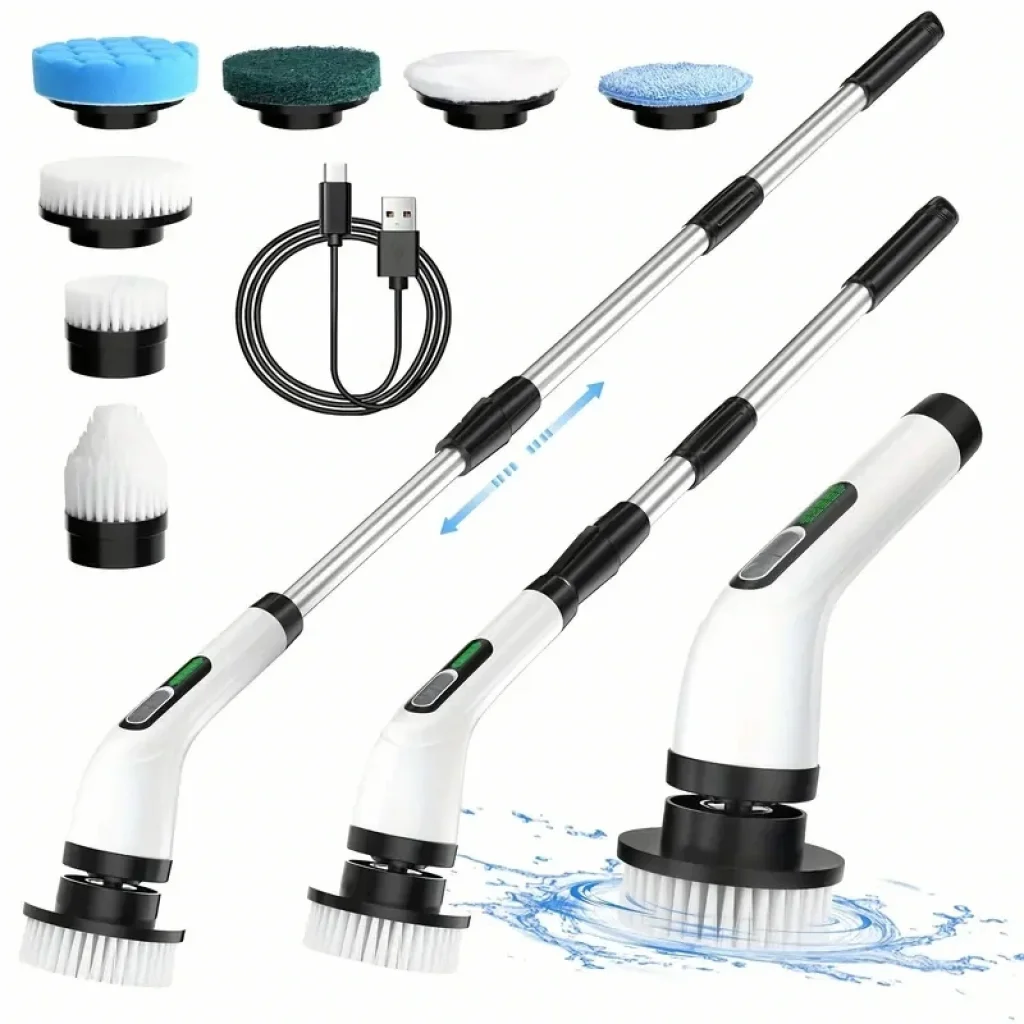 7 İN 1 KABLOSUZ ELEKTRİKLİ TEMİZLİK FIRÇASI SETİÜrün Özellikleri7 in 1 kablosuz elektrikli temizlik fırçası seti, ev ve araç temizliğinde maksimum konfor sunar. Uzatılabilir teleskopik sapı sayesinde 68 cm’den 141 cm’ye kadar ayarlanabilir ve yüksek veya ulaşılması zor alanlarda kolay temizlik sağlar. Güçlü döner motoru ile sabun, kir ve yağ kalıntılarını hızlı bir şekilde temizler. Farklı yüzeyler için özel olarak tasarlanmış 7 adet fırça ve sünger başlık içerir; lavabo, banyo, fayans, mutfak tezgahı, cam, araba yüzeyleri ve zeminlerde mükemmel sonuç verir. Ergonomik ve suya dayanıklı gövdesiyle uzun süreli kullanım sağlar. Kablosuz ve şarjlı yapısı sayesinde pratik kullanım sunar, kablo karmaşası olmadan temizlik yapılabilir. Şarj edilebilir bataryası ile tek şarjda uzun süre kesintisiz temizlik imkânı sağlar.Paket İçeriği1 adet teleskopik saplı elektrikli fırça7 adet değiştirilebilir temizlik başlığı1 adet USB şarj kablosu