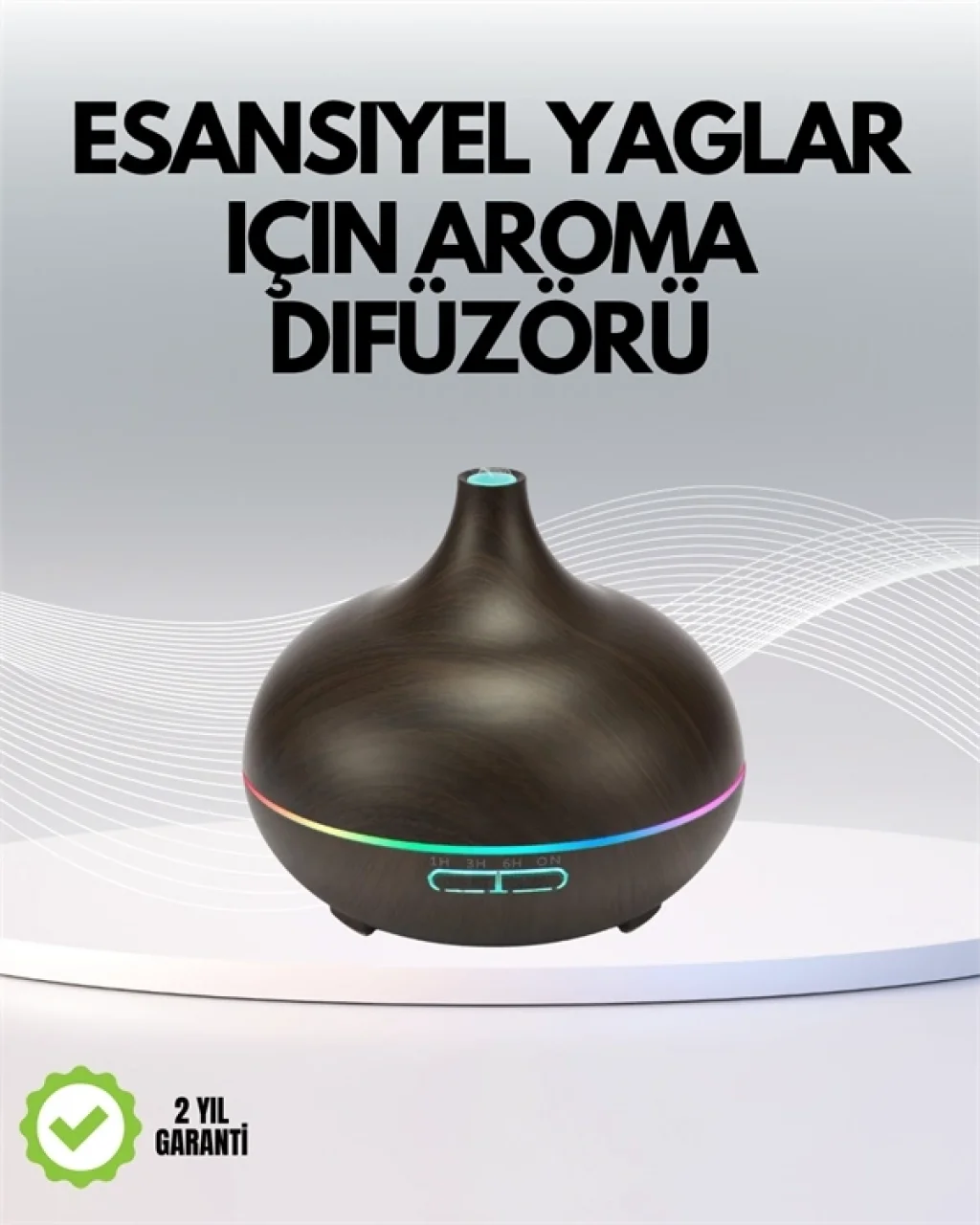 Bu cihaz, aromaterapi ve nemlendirme fonksiyonlarını bir arada sunar. 550 ml'lik geniş su tankı, ortamın uzun süre nemli kalmasını sağlar. Uçucu yağlarla kullanıldığında ferahlatıcı koku yayılımı elde edilir. 1, 3, 6 saatlik zaman ayarı ve sürekli çalışma modu ile farklı kullanım senaryolarına uygundur. Su seviyesi azaldığında otomatik olarak kapanarak güvenli kullanım sunar. Ultrasonik çalışma sistemi sayesinde oldukça sessizdir. Ortam ışığını destekleyen 7 renkli LED aydınlatma, uyku anlarında ortam atmosferini olumlu yönde etkiler.