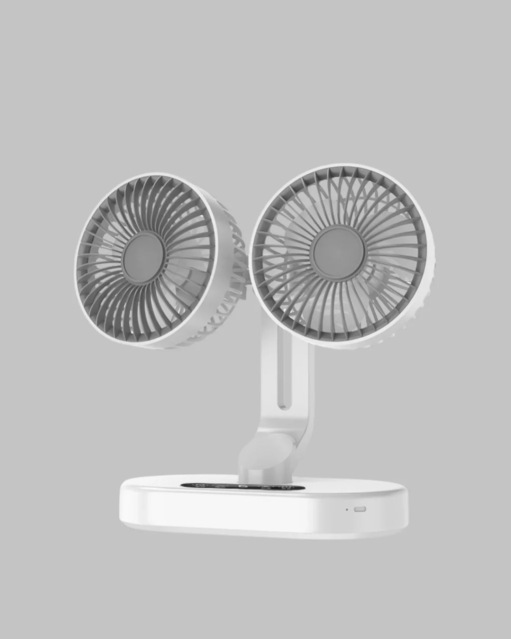 Yaz sıcaklarında konforu elden bırakmak istemeyenler için tasarlanan bu 720° dönebilen çift başlıklı masaüstü vantilatör, yenilikçi tasarımıyla her açıdan güçlü bir hava akışı sağlar.Çift taraflı döner başlık yapısı, serin havayı geniş bir alana yayar ve odanızın her köşesinde eşit serinlik sunar.USB şarj özelliği sayesinde powerbank, bilgisayar veya adaptör üzerinden kolayca şarj edilebilir. Kablosuz taşınabilir yapısı sayesinde ister ofiste ister yatak odasında, hatta seyahatte bile serin kalabilirsiniz.Geliştirilmiş batarya teknolojisiyle %78’e kadar daha uzun pil ömrü sunar, tek şarjla uzun saatler boyunca kesintisiz serinleme sağlar.Sessiz motor sistemi (36 dB) sayesinde uyku, çalışma veya dinlenme esnasında sizi rahatsız etmez. Kaymaz tabanlı yapısı stabil kullanım sağlar, duvara monte edilebilen delikleriyle hem masaüstü hem duvar tipi kullanım için idealdir.Ayrıca gece lambası modu, karanlık ortamlarda yumuşak bir aydınlatma sunarak iki işlevi bir arada sağlar.Modern, kompakt ve dayanıklı yapısıyla bu vantilatör, yaz aylarında serinliği her an yanınızda taşımanızı sağlar.
