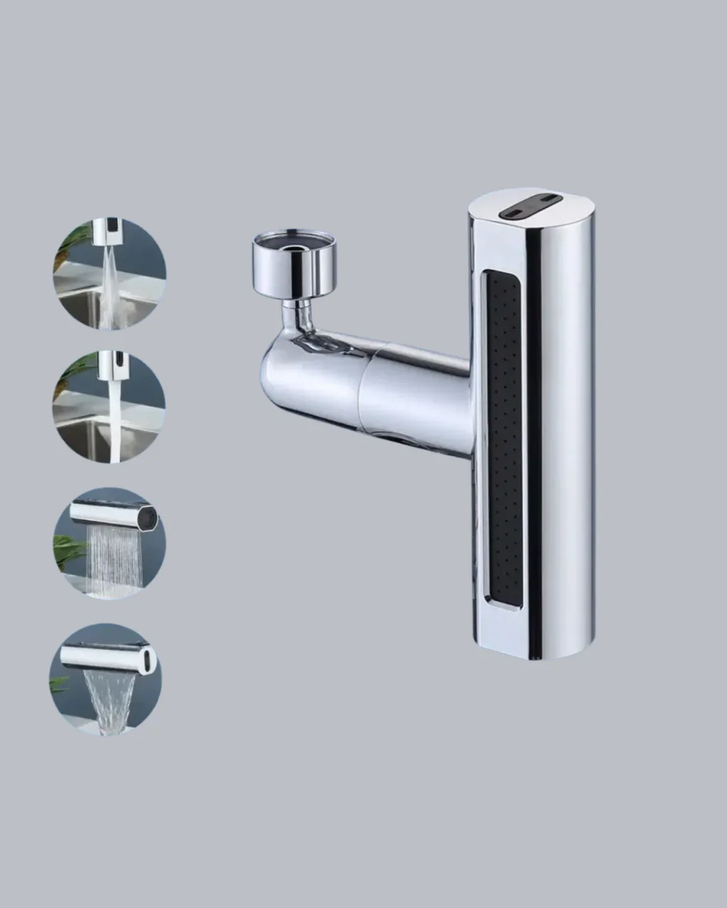 Fonksiyonelliği ve dayanıklılığı bir araya getiren ABS + Pirinç Alaşımlı Musluk Başlığı, modern evlerin vazgeçilmez yardımcılarından biri.4 farklı su çıkış modu (yağmur, şelale, sprey, kabarcık) ile ihtiyacınıza göre su akışını ayarlayabilir, suyu verimli kullanarak tasarruf sağlayabilirsiniz.360° dönebilen yapısı, lavabonun tüm bölgelerine kolay erişim sunar.Bu özellik özellikle geniş lavabolarda pratiklik sağlar ve bulaşık yıkama ya da temizlik işlemlerinde maksimum konfor sunar.Dayanıklı ABS ve pirinç malzeme, uzun ömürlü kullanım için korozyon ve paslanmaya karşı koruma sağlar.Kolay takılıp çıkarılabilen başlığı sayesinde dakikalar içinde monte edebilirsiniz.Modern ve minimalist tasarımı, mutfağınıza veya banyonunuza estetik bir görünüm kazandırır.Su tasarrufu, dayanıklılık ve şıklığı bir arada sunan bu musluk başlığı, günlük hayatı kolaylaştırmak için mükemmel bir tercihtir.Ürün Markası: Lisinya