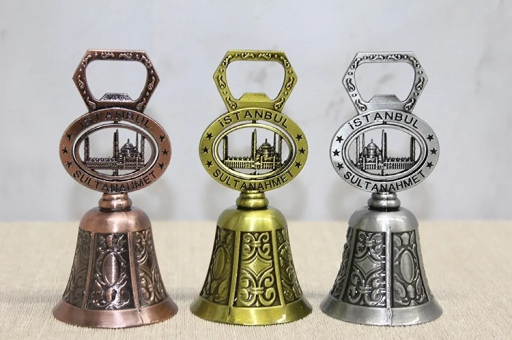 AÇACAKLI SULTANAHMET TEMALI EL ÇANIÜrün ÖzellikleriAçacaklı Sultanahmet Temalı El Çanı, dekoratif görünümü ve işlevsel tasarımıyla hem koleksiyonluk hem de günlük kullanım için tercih edilebilecek özel bir üründür. 10,5 cm boyutundaki kompakt yapısı sayesinde masaüstü, raf ve vitrin dekorasyonunda şık bir tamamlayıcı olarak kullanılabilir. Üzerinde yer alan Sultanahmet temalı detaylar ürüne turistik ve estetik bir karakter kazandırır. Alt kısmında bulunan açacak fonksiyonu sayesinde yalnızca dekoratif değil, aynı zamanda pratik bir kullanım da sunar. Metal gövde yapısı sağlam ve dengeli bir duruş sağlarken klasik tasarım çizgisi dikkat çeker. Gönderim sırasında görselde yer alan renklerden biri olarak gönderilmektedir. Hem süs hem kullanım avantajı sunan bir açacaklı el çanı modelidir. Şehir simgesi tasarımıyla öne çıkan dekoratif bir Sultanahmet temalı metal çan alternatifidir.Ürün Teknik ÖzellikleriÖzellikAçıklamaÜrün AdıAçacaklı Sultanahmet Temalı El ÇanıBoyut10,5 cmMalzemeMetalÖzellikAçacak FonksiyonluTemaSultanahmet TasarımıRenkGörseldeki Renklerden Biri Olarak GönderilirKullanım AlanıDekoratif ve Açacak Amaçlı KullanımPaket İçeriği1 Adet Açacaklı Sultanahmet Temalı El Çanı