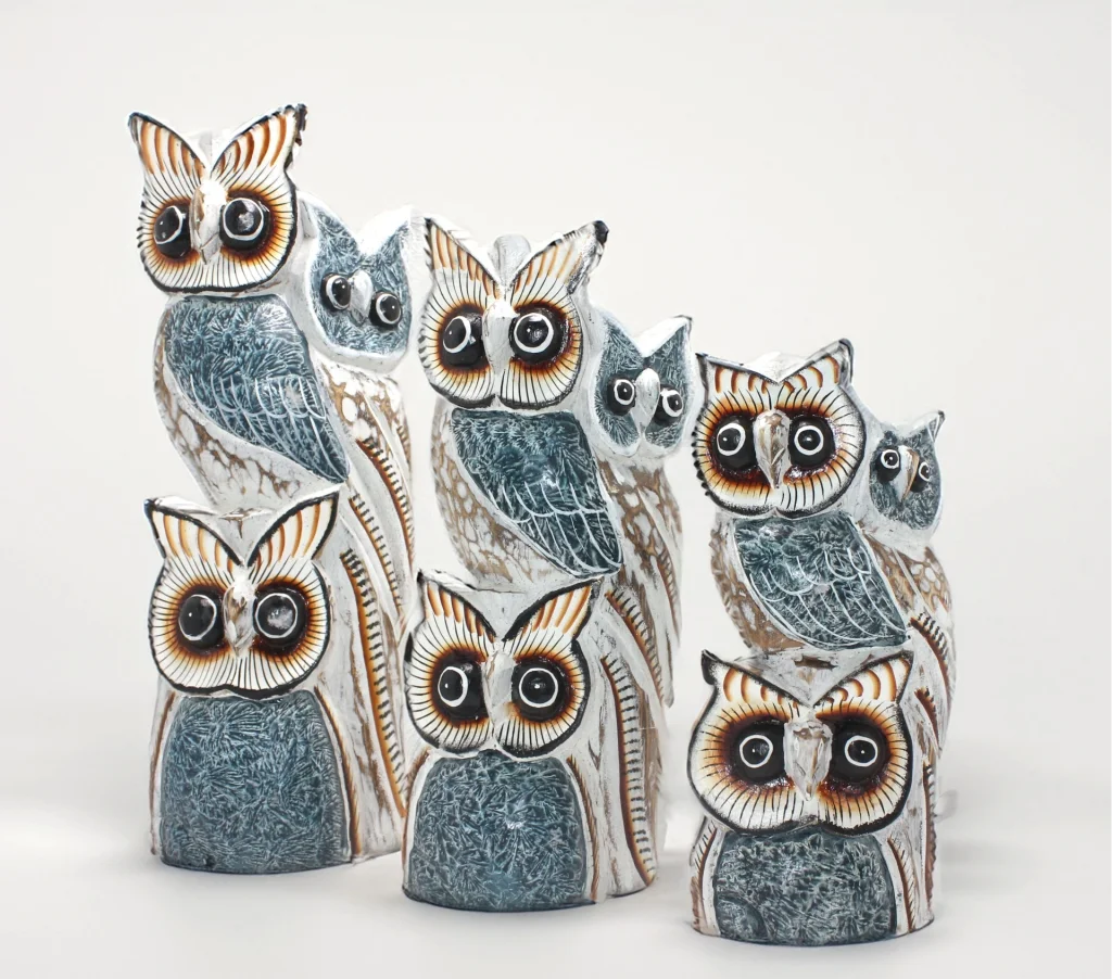 Ahşap 3'Lü Baykuş Seti 3Okas-18 Ürün Ölçüleri 30-40-50 Cm