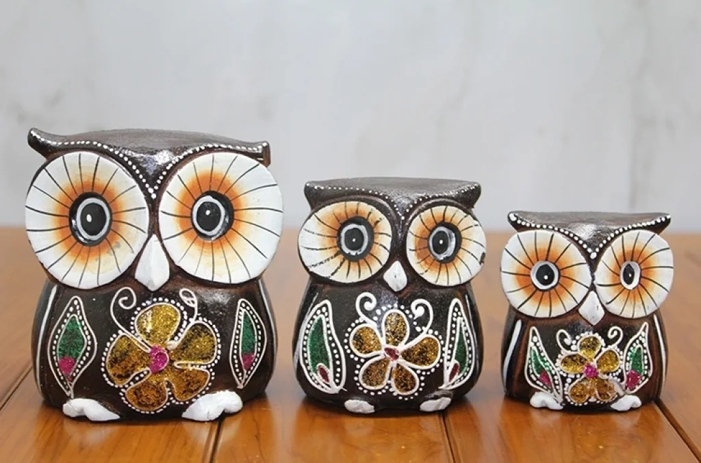 AHŞAP 3'LÜ BAYKUŞ SETİ MODEL 1Ürün ÖzellikleriDoğal ahşaptan üretilmiş 3 farklı boyuttaki baykuş figürlü dekoratif set, ev ve ofis dekorasyonuna şık ve otantik bir hava katmak için tasarlanmıştır. Set içerisinde 7 cm, 8 cm ve 10 cm boyutlarında üç baykuş figürü bulunmaktadır. El işçiliğiyle detaylandırılmış bu özel tasarım, hem klasik hem de modern dekorasyon tarzlarına uyum sağlar. Kaliteli ve dayanıklı ahşap malzemesi sayesinde uzun ömürlüdür. Raf, masa, vitrin veya kitaplık gibi alanlarda dekoratif kullanım için idealdir.Paket İçeriği1 adet Ahşap 3'lü Baykuş Seti Model 1