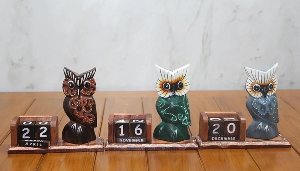 AHŞAP BAYKUŞ TAKVİM BÜYÜK BOYÜrün ÖzellikleriDoğal ahşaptan üretilen büyük boy baykuş figürlü takvim, 14x15 cm boyutundadır. El işçiliği ile tasarlanmış bu dekoratif takvim, masa üstü kullanım için şık ve işlevsel bir seçenektir. Gün, ay ve tarih blokları sayesinde her yıl tekrar kullanılabilir. Baykuş figürü ile sevimli ve estetik bir görünüm sunarak hem dekoratif hem de pratik bir masa aksesuarıdır. Ev, ofis veya hediye olarak ideal bir seçimdir.Paket İçeriği1 adet ahşap baykuş takvim (büyük boy).