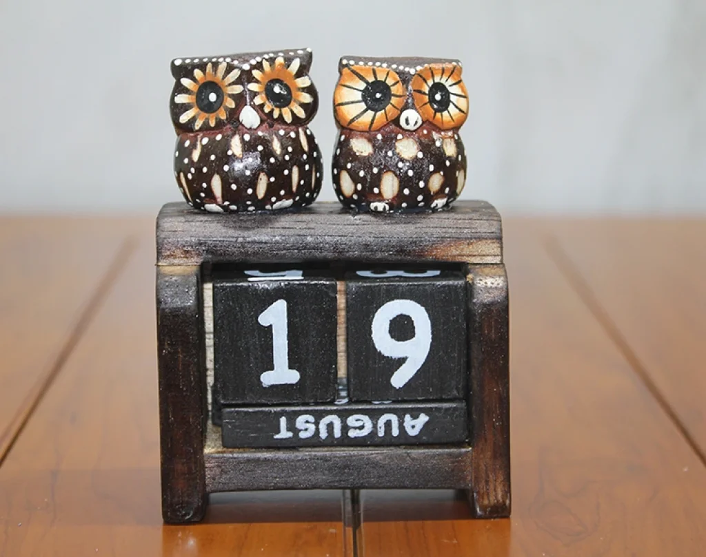 AHŞAP BAYKUŞ TAKVİM KÜÇÜK BOYÜrün ÖzellikleriDoğal ahşaptan üretilen küçük boy baykuş figürlü takvim, 10x7 cm boyutundadır. El işçiliği ile tasarlanan bu dekoratif takvim, masa üstü kullanım için şık ve işlevsel bir seçenektir. Gün, ay ve tarih blokları sayesinde her yıl tekrar kullanılabilir. Baykuş figürü ile sevimli ve estetik bir görünüm sunarak hem dekoratif hem de pratik bir masa aksesuarı olur.Paket İçeriği1 adet ahşap baykuş takvim (küçük boy).