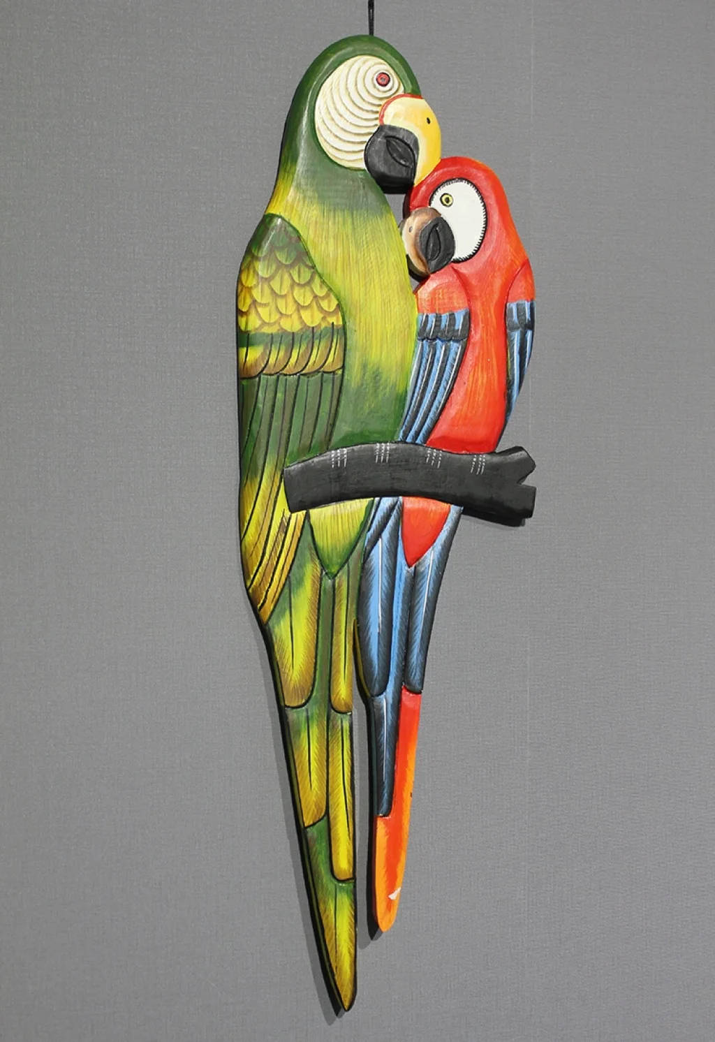 BUĞZ Ahşap Duvara Asmalı 2'li Papağan Model 1