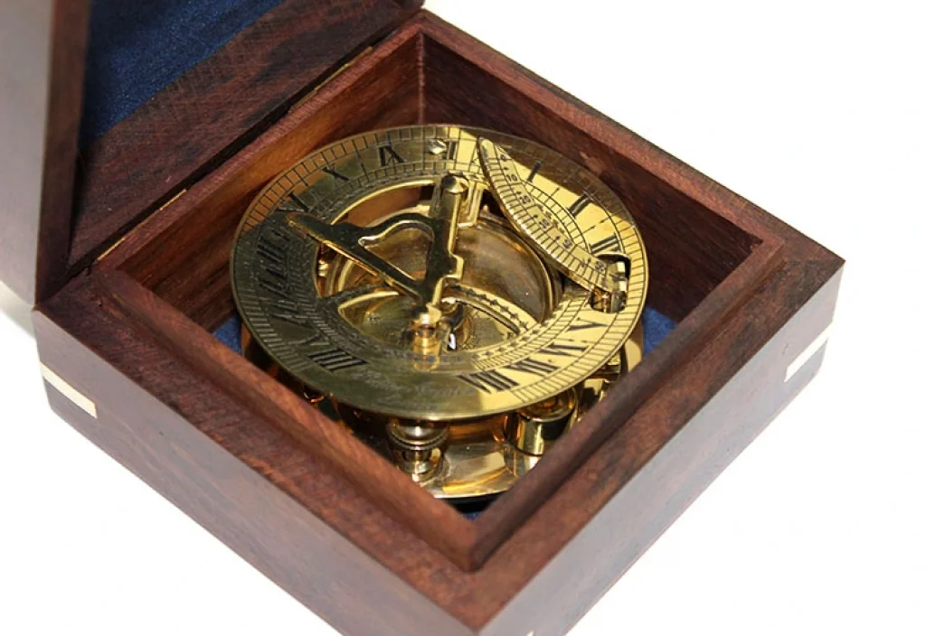 AHŞAP KUTULU PİRİNÇ GÜNEŞ SAATİ VE PUSULA MODELİÜrün ÖzellikleriAhşap kutulu pirinç güneş saati ve pusula modeli, zarif bir dekoratif üründür. Ahşap kutu içinde yer alan pirinç güneş saati ve pusula, antik tarzda işlenmiş ve fonksiyonel özellikler taşır. Bu şık ürün, hem dekoratif hem de işlevsel olarak kullanılabilir, aynı zamanda nostaljik bir hava yaratır. Ofislerde, evde ya da koleksiyonluk parça olarak kullanılabilecek ideal bir üründür. Hem görsel açıdan etkileyici hem de günlük hayatta pratik kullanım imkanı sunar.Paket İçeriği1 Adet Ahşap Kutulu Pirinç Güneş Saati ve Pusula Modeli