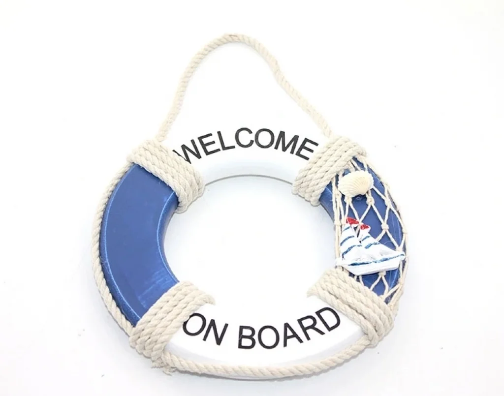 AHŞAP MARİN DUVARA ASMALI SİMİT MODEL 1Ürün ÖzellikleriAhşap Marin Duvara Asmalı Simit, deniz temalı dekorasyonu sevenler için şık ve otantik bir tasarıma sahiptir. "Welcome On Board" yazısı ve denizci detayları ile evlerinize, yazlıklarınıza veya marin temalı mekanlarınıza sıcak bir dokunuş katar. Dayanıklı ahşap malzemeden üretilmiş olup uzun ömürlü bir kullanım sunar. Halat ip detayları sayesinde duvara kolayca asılabilir ve mekana deniz esintisi getirir. Hem iç mekan hem de dış mekan dekorasyonu için ideal bir parçadır.Paket İçeriği1 Adet Ahşap Marin Duvara Asmalı Simit Model 1