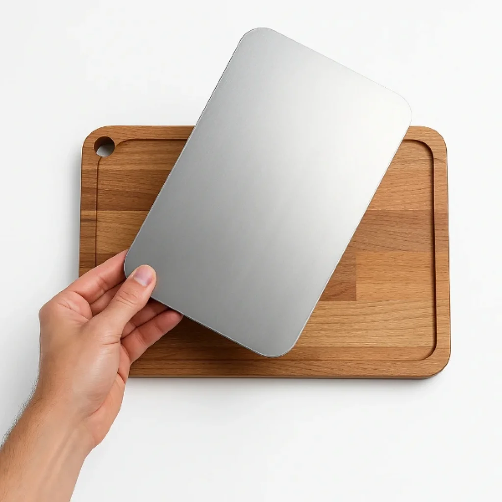 AHŞAP PASLANMAZ ÇELİK KESİM VE SUNUM TAHTASIÜrün ÖzellikleriAhşap paslanmaz çelik kesim ve sunum tahtası, hem şık görünümü hem de işlevselliğiyle mutfakların vazgeçilmez ürünlerinden biridir. Paslanmaz çelik pano 28.5 x 19.5 cm boyutundadır ve kolayca çıkarılabilir özelliği sayesinde pratik bir kullanım sunar. Ahşap tahta kısmı ise 31 x 22 cm ölçülerindedir. Hem sunum hem de kesim amacıyla kullanılabilen bu ürün, dayanıklı yapısıyla uzun ömürlü bir kullanım imkânı sağlarken sofralara da zarif bir dokunuş katar.Paket İçeriği1 adet Ahşap Paslanmaz Çelik Kesim Ve Sunum Tahtası