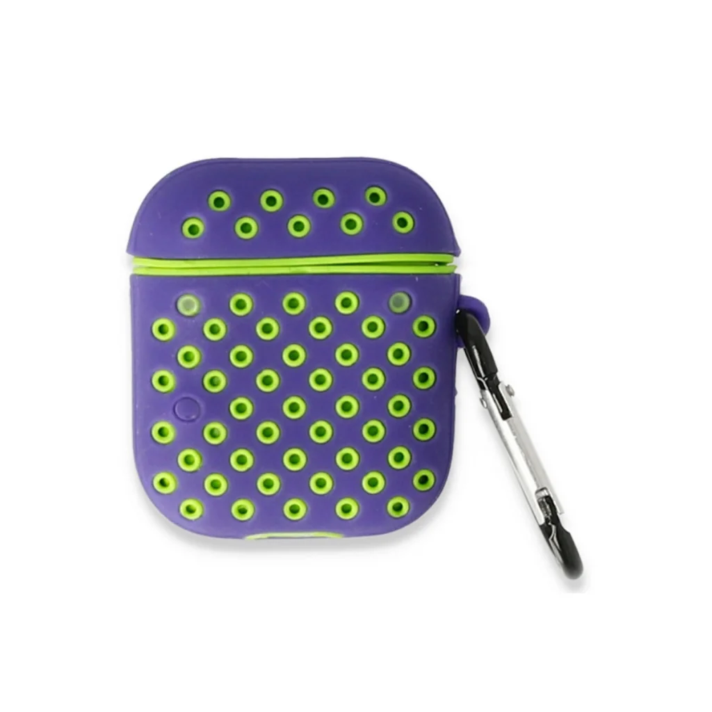 Airpods 2 (2.nesil) Spor Delikli Kılıf - Lila-yeşil