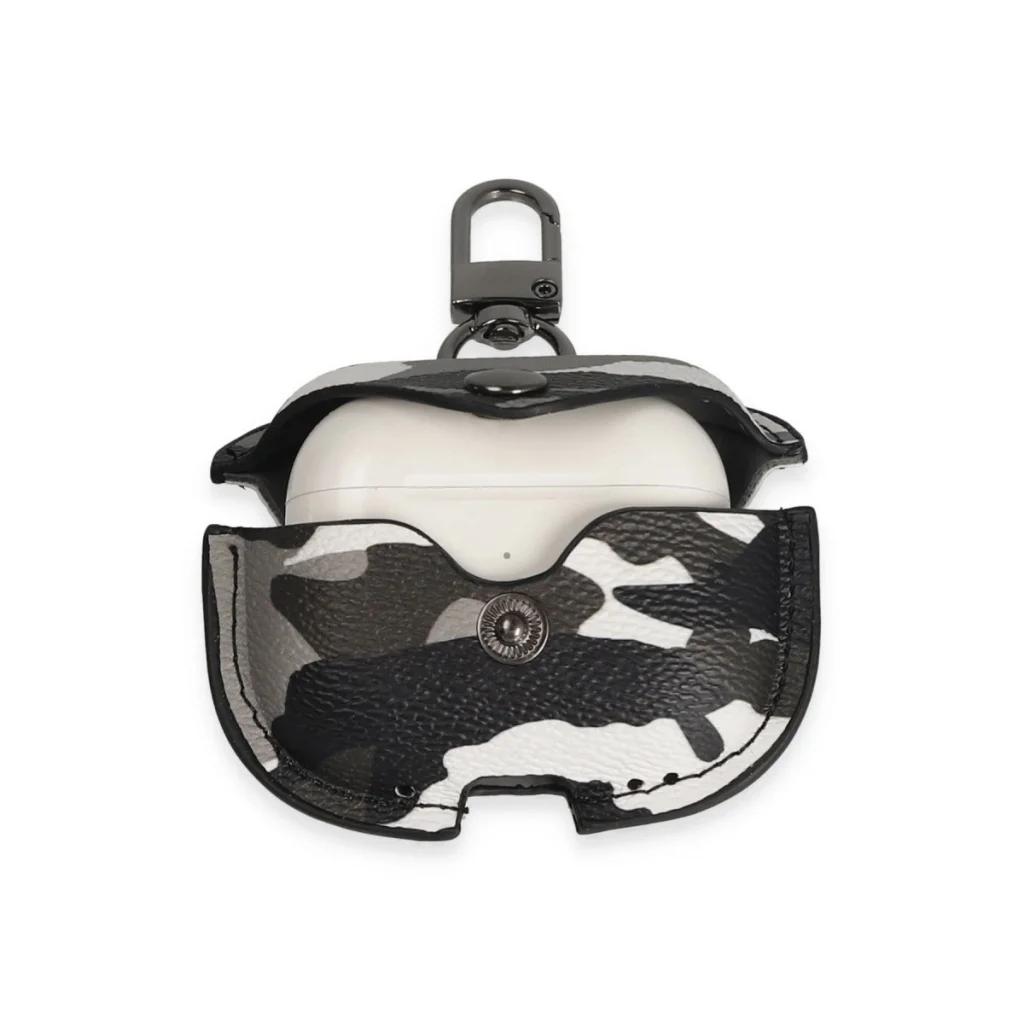 Airpods 3 (3.nesil) Çanta Kamuflaj Deri Kılıf - Gri