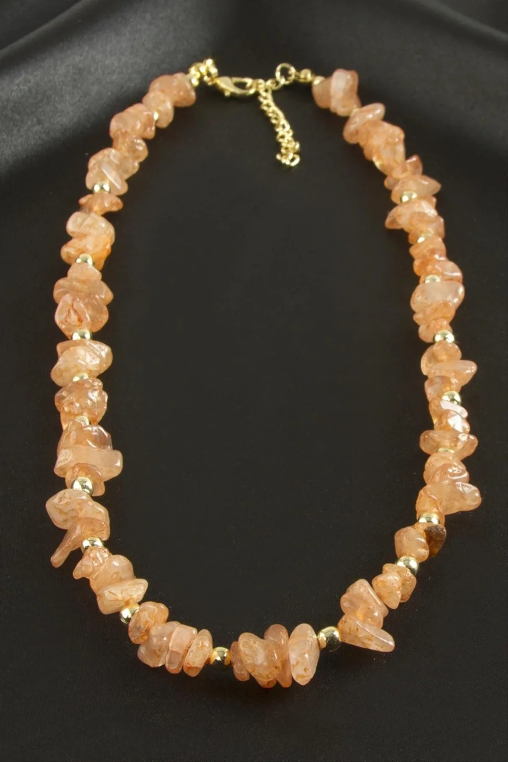 Kolye; Ürün malzemesi kırık doğaltaş ve metaldir. Ürün boyu 45 cmdir. Kartlıdır. 1 sınıf kaliteli malzemeden üretilmiştir.