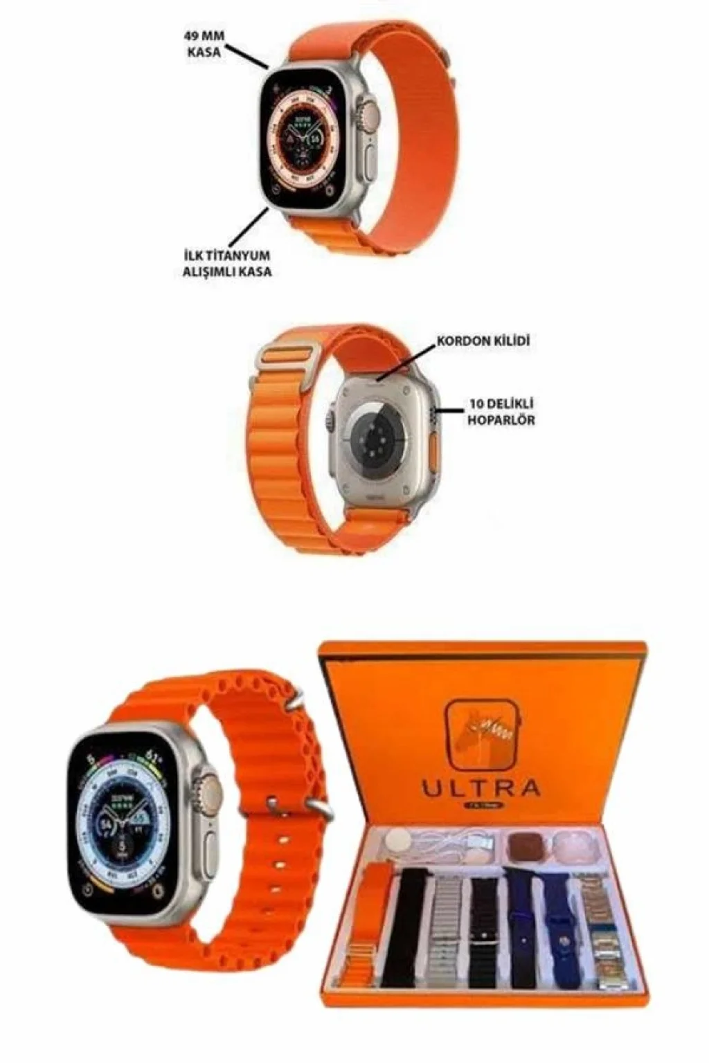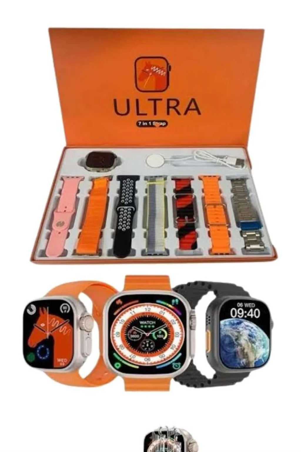 8 Ultra 7-in-1 Akıllı Saat: Bir saatin sunabileceği tüm fonksiyonları bir araya getiren bu şık akıllı saat, günlük hayatınızı kolaylaştıran birçok özellik sunuyor. 7 kordonlu tasarımıyla hem estetik hem de fonksiyonel bir tasarım sunarken, modern hayatın ihtiyaçlarına tamamen uyum sağlar.Sesli Çağrı Yanıtlama ve Konuşma: Sesli çağrıları yanıtlayabilir, mesajlarınızı ve bildirimlerinizi anlık olarak takip edebilirsiniz. Çift hoparlörü ve yüksek kaliteli mikrofonu sayesinde, sesli aramalarda net ve kaliteli bir ses deneyimi sunar. Ayrıca, bu modeldeki ilk çift hoparlör teknolojisi, ses performansını bir üst seviyeye taşır.Ürün Markası: BUĞZ
