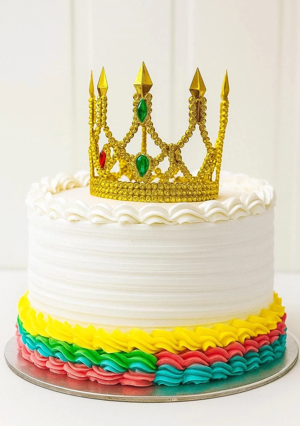 Altın Renk Pasta Tacı, küçük prenseslerin,prenslerin ve minik kralların hayal gücünü süsleyen, ışıltılı bir parti aksesuarıdır. Bu özel tasarım taç, pastaların üzerine yerleştirildiğinde kutlamanıza a masalsı bir hava katar.