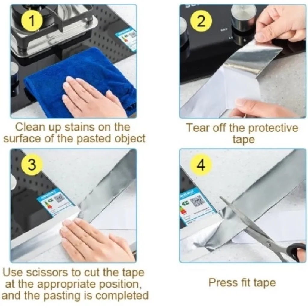 ALÜMİNYUM SU SIZDIRMAZ YANMAZ BANTAlüminyum su geçirmez koruma bantı ocak kenarı, lavabo ve ihtyaca göre boşluklar için uygundur.Kendinden yapışkanlı alüminyum bantı ihtiyacınıza göre kesim yaparak kullanabilirsinizGüçlü sızdırmazlık, anti-yağ ve anti-küf özellikleri vardır.Yangın geciktirici, ısı yalıtımı ve yüksek sıcaklık dayanımı sağlar.Boyutları:Genişlik: 3 cmUzunluk : 5 metre
