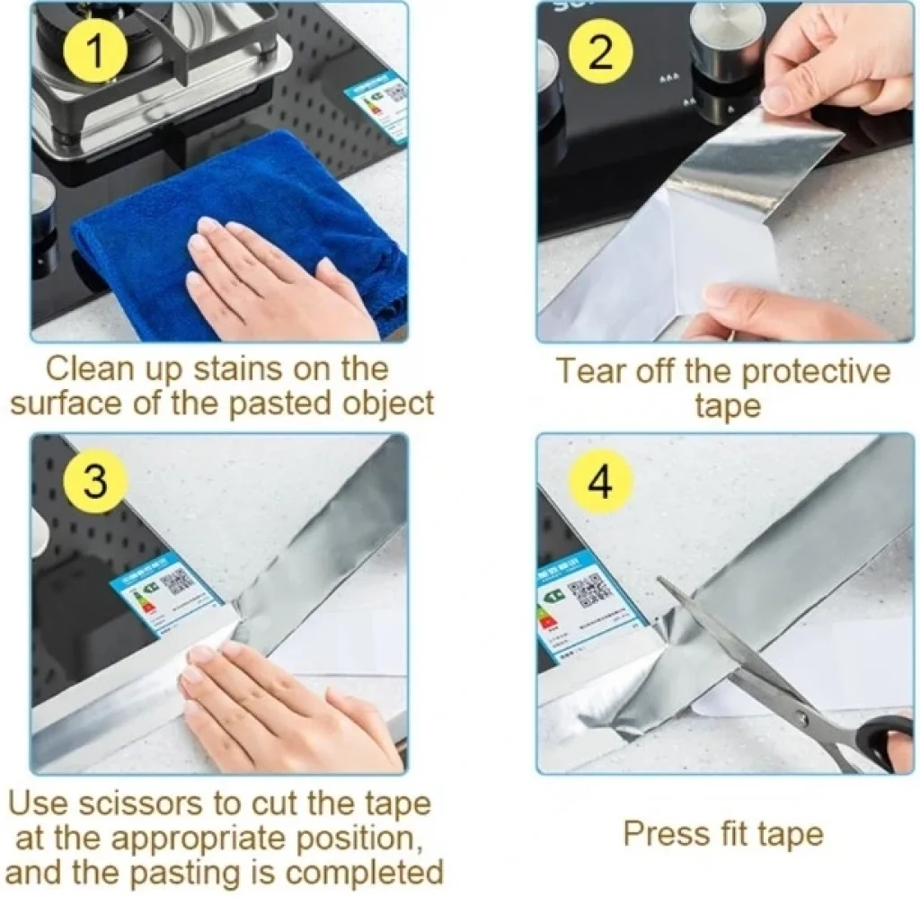 ALÜMİNYUM SU SIZDIRMAZ YANMAZ BANTAlüminyum su geçirmez koruma bantı ocak kenarı, lavabo ve ihtyaca göre boşluklar için uygundur.Kendinden yapışkanlı alüminyum bantı ihtiyacınıza göre kesim yak kullanabilirsinizGüçlü sızdırmazlık, anti-yağ ve anti-küf özellikleri vardır.Yangın geciktirici, ısı yalıtımı ve yüksek sıcaklık dayanımı sağlar.Boyutları:Genişlik: 3 cmUzunluk : 5 metre