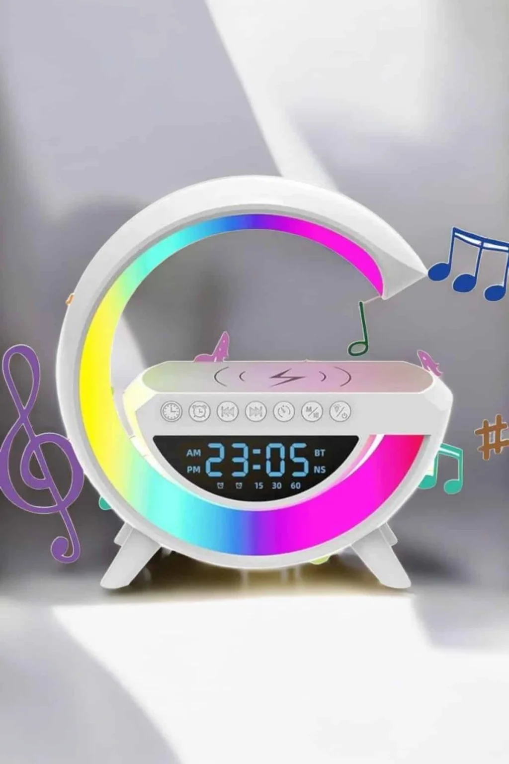 Kablosuz Şarj Özellikli Bluetooth Hoparlör Gece Lambası, şık tasarımı ve birden fazla işlevi bir arada sunarak modern yaşam tarzınıza mükemmel bir uyum sağlar. Bu cihaz, yüksek kaliteli LED gece lambası özelliği ile ortamınıza sıcak beyaz ışıktan renkli RGB aydınlatmalara kadar farklı ışık seçenekleri sunar. Ayarlanabilir parlaklık ayarları sayesinde hem bir çalışma lambası hem de dinlendirici bir gece lambası olarak kullanılabilir. Kompakt boyutları ve hafif yapısı ile kolay taşınabilir olan bu ürün, yalnızca evde değil, ofiste veya seyahatlerde de kullanılabilir. Evinize stil ve işlevsellik katmakla kalmaz, aynı zamanda başucu arkadaşı olarak günlük hayatınızı kolaylaştırır. Ürün Markası: BUĞZ