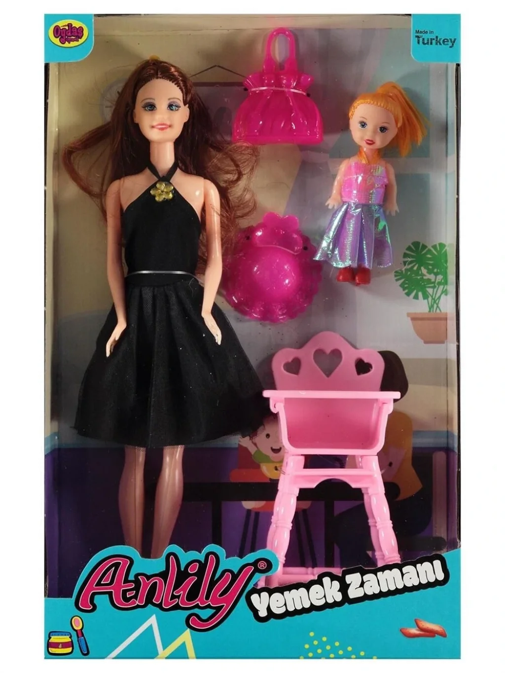 Anlily bebek bebeği ve mama sandalyesi .Ccedil;anta ve Şapkasıyla G.uuml;zel Eğlenceli Bir Oyun Seti