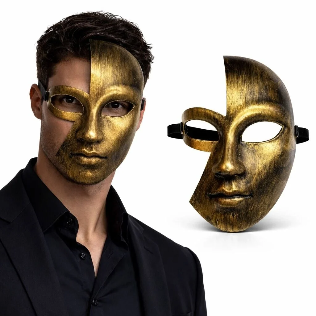BUĞZ Antik Efektli Altın Yarım Yüz Plastik Parti Maskesi