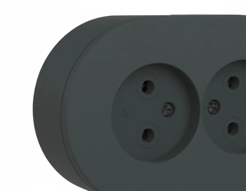 Antrasit renkli sıva üstü priz, iki topraklı çıkışı ile elektrik ihtiyacınızı güvenle karşılar. Modern tasarımı sayesinde her mekana uyum sağlar.