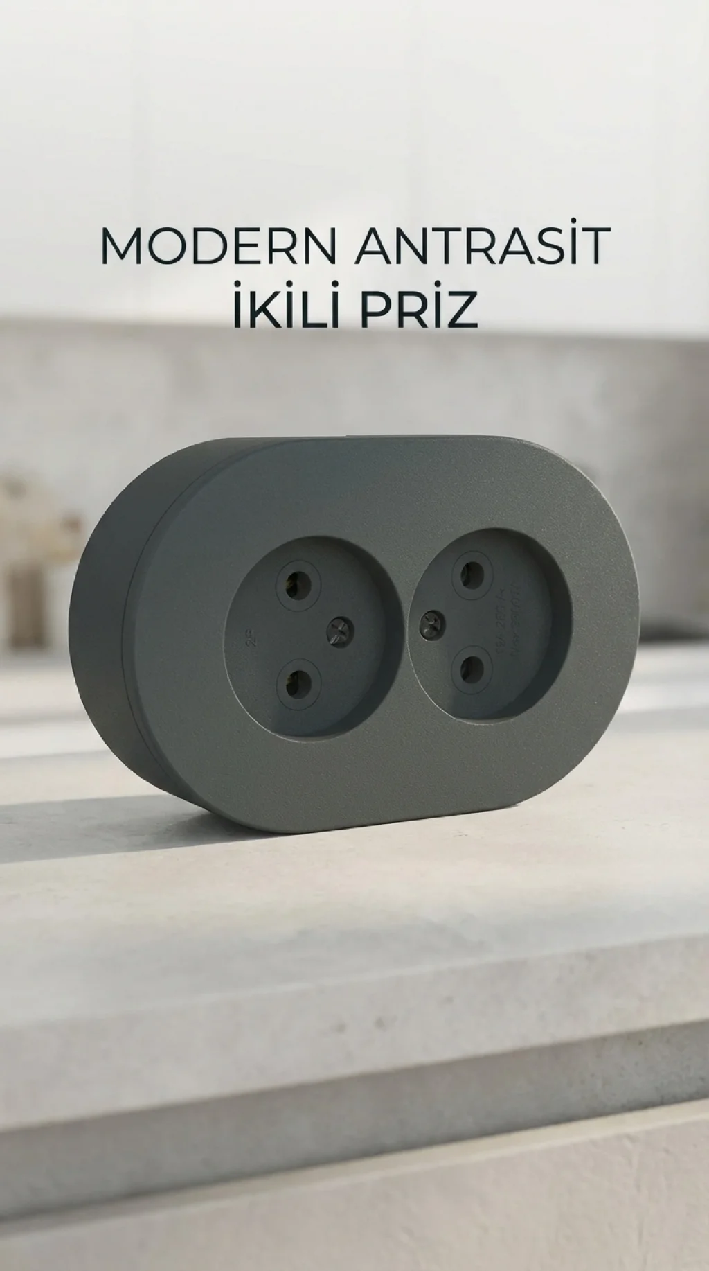 Antrasit tonlarındaki bu sıva üstü priz, çiftli elektrik bağlantısını pratik bir şekilde sunar. Modern tasarımı ile ev ve ofis dekorasyonlarına uyum sağlar. Dayanıklı yapısıyla uzun süreli kullanım imkanı tanır.