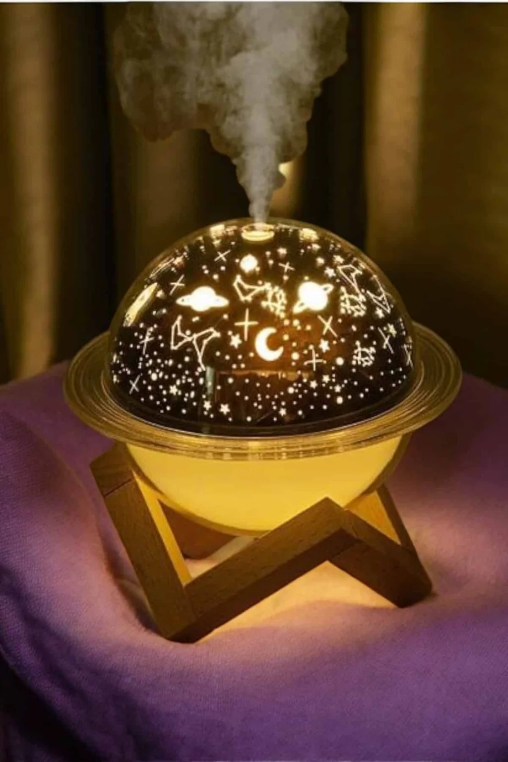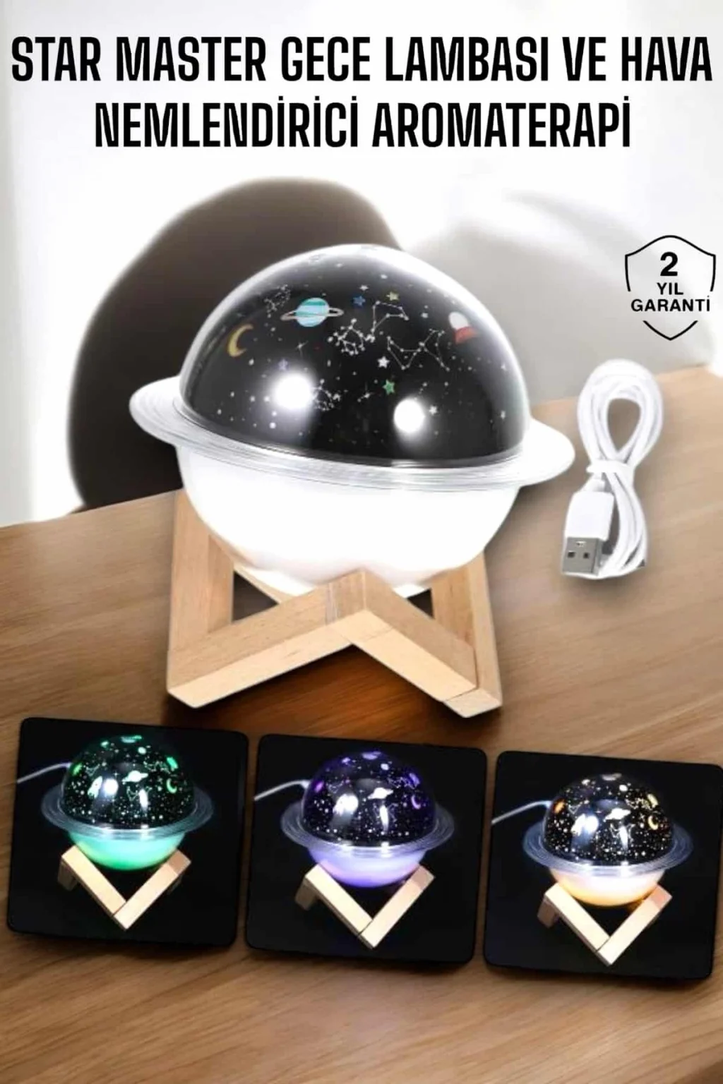 USB Projeksiyon Gece Lambası ve Hava Nemlendirici, kuru havanın zararlı etkilerini ortadan kaldırmak ve yaşam alanınızda sağlıklı bir atmosfer yaratmak için tasarlanmıştır. Bu cihaz, havayı nemlendirerek cilt kuruluğu, boğaz tahrişi gibi problemleri önler, nefes almayı kolaylaştırır ve cildinize ihtiyacı olan nemi sağlar. Şık ve zarif tasarımı, odanızın dekorasyonunu tamamlayan modern bir dokunuş sunar.Projeksiyon özelliği, cihazın sadece bir hava nemlendirici değil, aynı zamanda etkileyici bir gece lambası olarak da kullanılmasını sağlar. Odanıza huzurlu bir ambiyans sağlayan bu projeksiyon, rahatlamanıza ve stresinizi atmanıza yardımcı olur. Su haznesine ekleyebileceğiniz esans veya parfümlerle, yaşam alanınızı hoş kokularla doldurabilir ve aromaterapi etkisinden faydalanabilirsiniz. USB bağlantı özelliği, cihazın kolaylıkla taşınabilmesini ve farklı güç kaynaklarından enerji almasını sağlar.Bu nemlendirici cihaz, hem sağlığınızı destekler hem de estetik ihtiyaçlarınızı karşılar. Kompakt boyutları, kolay kullanımı ve fonksiyonel özellikleriyle gün boyu kaliteli hava solumanızı sağlar. Gece daha iyi bir uyku için kuru havanın zararlı etkilerini ortadan kaldırır, cildinizi korur ve yaşam alanınızı güzelleştirir.