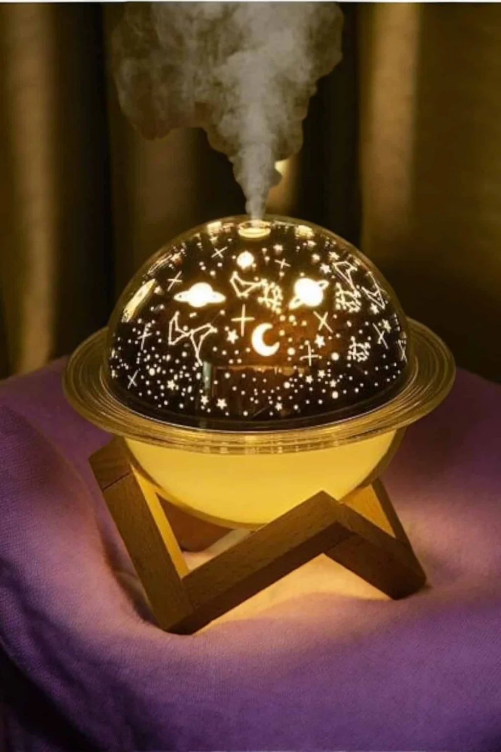 USB Projeksiyon Gece Lambası ve Hava Nemlendirici, kuru havanın zararlı etkilerini ortadan kaldırmak ve yaşam alanınızda sağlıklı bir atmosfer yaratmak için tasarlanmıştır. Bu cihaz, havayı nemlendirerek cilt kuruluğu, boğaz tahrişi gibi problemleri önler, nefes almayı kolaylaştırır ve cildinize ihtiyacı olan nemi sağlar. Şık ve zarif tasarımı, odanızın dekorasyonunu tamamlayan modern bir dokunuş sunar.Projeksiyon özelliği, cihazın sadece bir hava nemlendirici değil, aynı zamanda etkileyici bir gece lambası olarak da kullanılmasını sağlar. Odanıza huzurlu bir ambiyans sağlayan bu projeksiyon, rahatlamanıza ve stresinizi atmanıza yardımcı olur. Su haznesine ekleyebileceğiniz esans veya parfümlerle, yaşam alanınızı hoş kokularla doldurabilir ve aromaterapi etkisinden faydalanabilirsiniz. USB bağlantı özelliği, cihazın kolaylıkla taşınabilmesini ve farklı güç kaynaklarından enerji almasını sağlar.Bu nemlendirici cihaz, hem sağlığınızı destekler hem de estetik ihtiyaçlarınızı karşılar. Kompakt boyutları, kolay kullanımı ve fonksiyonel özellikleriyle gün boyu kaliteli hava solumanızı sağlar. Gece daha iyi bir uyku için kuru havanın zararlı etkilerini ortadan kaldırır, cildinizi korur ve yaşam alanınızı güzelleştirir.Ürün Markası: BUĞZ