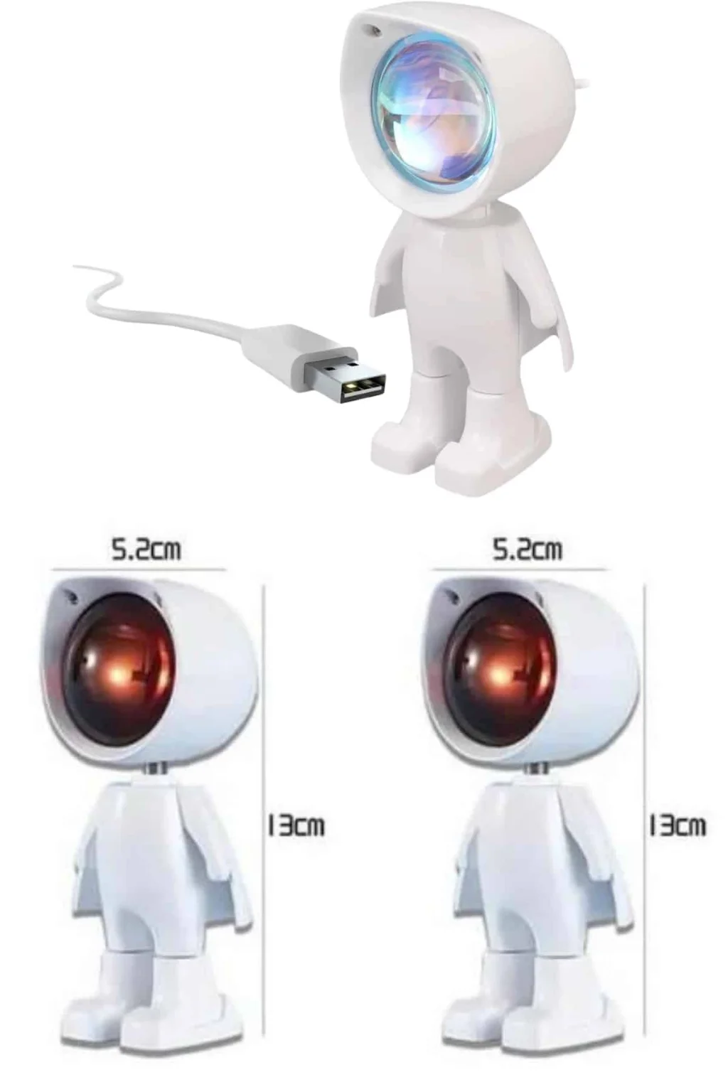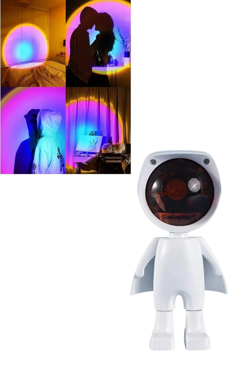 Gün batımı efektli bu şarjlı lamba, sevimli astronot tasarımı ile dikkat çeken hem işlevsel hem de dekoratif bir aydınlatma çözümüdür. LED ışık kaynağı sayesinde loş, yumuşak ve sıcak bir aydınlatma sunar; böylece ortamda huzurlu ve sakin bir atmosfer yaratır. Özellikle yatak odası, oturma odası ya da çalışma alanları gibi kişisel yaşam alanlarında hem gece lambası hem de ortam ışığı olarak rahatlıkla kullanılabilir.360 derece dönebilen başlığı ve 60 derece yukarı-aşağı hareket kabiliyeti sayesinde ışığın açısını kolaylıkla ayarlayabilir, istediğiniz duvar ya da alana doğrudan yansıtabilirsiniz. Bu sayede yalnızca ortama ışık vermekle kalmaz, aynı zamanda dekoratif bir efekt yaratır. Kompakt ve taşınabilir yapısıyla ev dışında da rahatlıkla kullanılabilir; ister seyahatlerde ister dış mekân etkinliklerinde şarjlı yapısıyla kablosuz olarak yanınızda taşıyabilirsiniz.USB kablosu ile kolayca şarj edilen bu ürün, tam dolumda yaklaşık 3-4 saat kesintisiz kullanım sunar. Güç kaynağına bağlıyken ise sınırsız kullanım avantajı sağlar. Dokunmatik kontrol paneli ile ışığı açıp kapamak ve parlaklık seviyesini ayarlamak son derece pratiktir. Bu özellik, hem kullanım kolaylığı hem de modern bir deneyim sunar.Gün batımı projektör lambası, yalnızca fonksiyonel bir gece lambası değil, aynı zamanda romantik ve sıcak bir ambiyans yaratmak isteyenler için eşsiz bir aksesuardır. Film izlerken, kitap okurken ya da sadece dinlenmek istediğinizde ortamı yumuşak ışığıyla dönüştürür. Ayrıca fotoğraf ve video çekimlerinde estetik bir arka plan ışığı olarak da kullanılabilir. Şıklığı ve işlevselliği bir arada sunan bu ürün, hem kendiniz için hem de sevdiklerinize hediye olarak ideal bir tercihtir. Ürün Markası: Lisinya