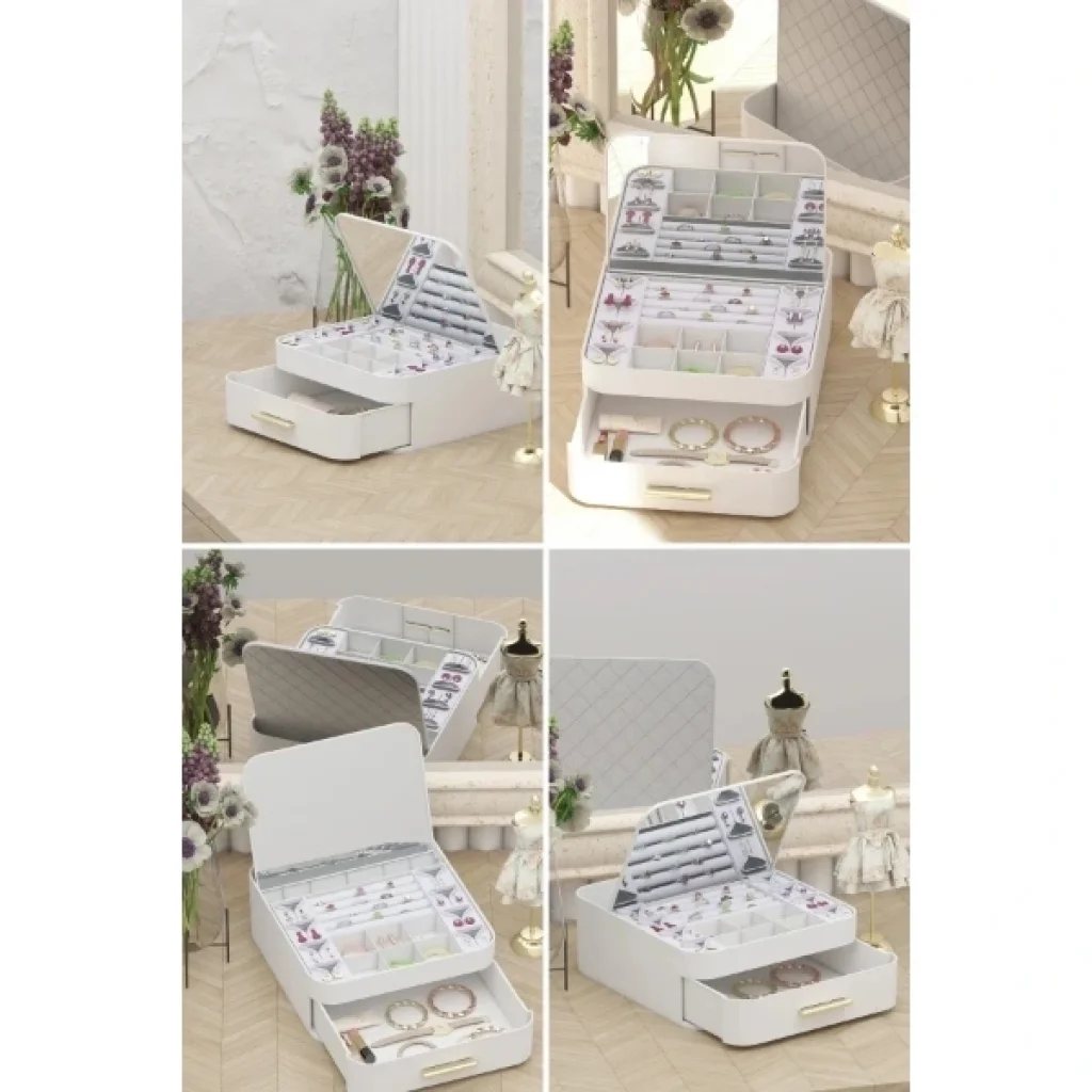 AYNALI TAKI ORGANİZERİÜrün ÖzellikleriAynalı takı organizeri, şık ve fonksiyonel tasarımıyla takılarınızı düzenli bir şekilde saklamanız için mükemmel bir çözümdür. İç kısmında bölmeli yapısı sayesinde yüzük, küpe, bileklik ve kolyelerinizi düzenli şekilde yerleştirebilirsiniz. Üst kapağında bulunan ayna sayesinde takılarınızı rahatça takabilir ve kombinlerinize kolayca karar verebilirsiniz. Çekmeceli yapısı ek depolama alanı sunarak büyük takılar için ideal bir saklama alanı oluşturur. Modern ve zarif tasarımı ile hem şıklık hem de kullanım kolaylığı sağlar.Paket İçeriği1 Adet Aynalı Takı Organizeri