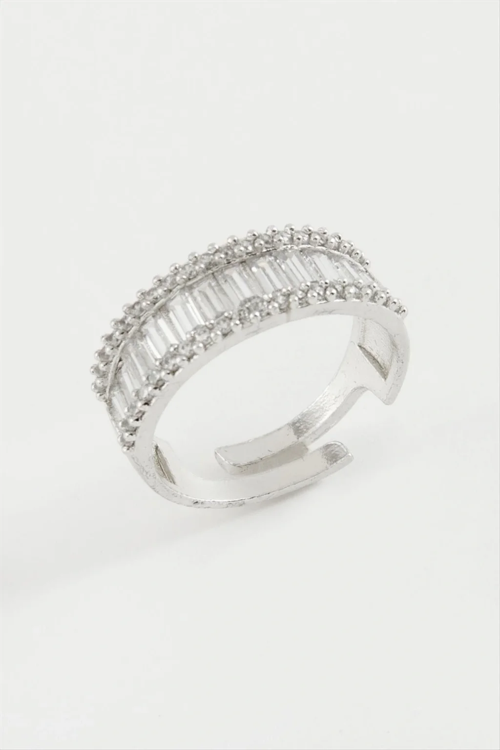 Yüzük; Ürün malzemesi baget taş ve metaldir. 1 sınıf kaliteli malzeme kullanılmıştır. Yüzük parmağa göre ayarlanabilir.
