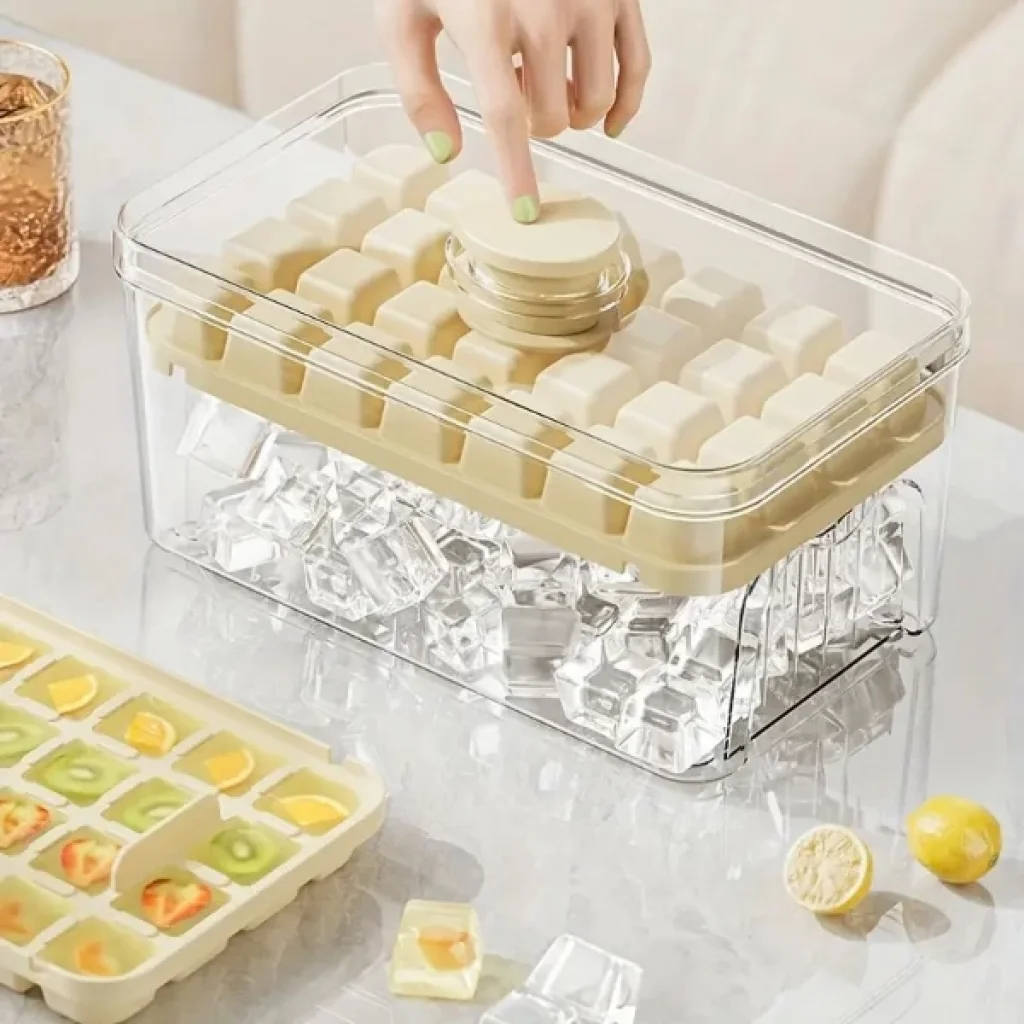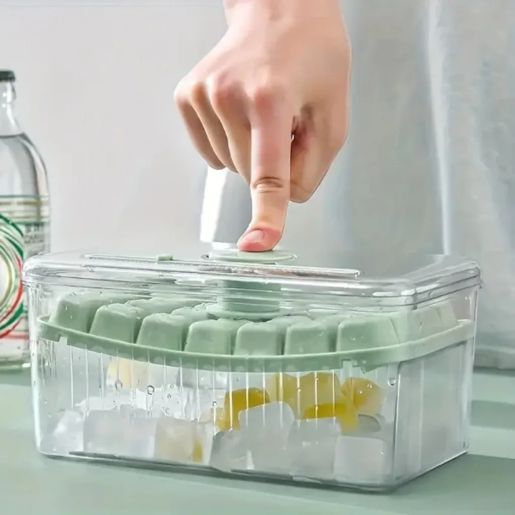 BASMALI HAZNELİ BUZLUKÜrün ÖzellikleriBasmalı hazneli buzluk, mutfakta kullanım kolaylığı sağlamak için özel olarak tasarlanmış pratik bir üründür. Dayanıklı ve BPA içermeyen kaliteli plastik malzemeden üretilmiş olup, gıda ile temasa uygundur. Ürün iki ayrı kalıptan oluşur ve tek seferde toplamda 56 adet buz küpü hazırlama kapasitesine sahiptir. Şeffaf kapaklı tasarımı sayesinde buzların durumu kolayca kontrol edilebilir. Üzerinde yer alan basmalı mekanizma sayesinde buz küplerini elinizi ıslatmadan ve kırma işlemiyle uğraşmadan zahmetsizce çıkarmanıza olanak tanır. Buzları temiz ve hijyenik bir şekilde saklamanız için özel haznesi mevcuttur. Kompakt boyutu sayesinde buzdolabında fazla yer kaplamaz ve kolay temizlenebilir yapısıyla pratik bir kullanım sunar.Ürün ölçüleri 19 cm uzunluk, 11,6 cm genişlik ve 8 cm yükseklikten oluşmaktadır. Fonksiyonel yapısı ile mutfak düzeninizi bozmadan, buz hazırlama sürecinizi hızlı ve hijyenik hale getirir.Paket İçeriği1 adet basmalı hazneli buzluk