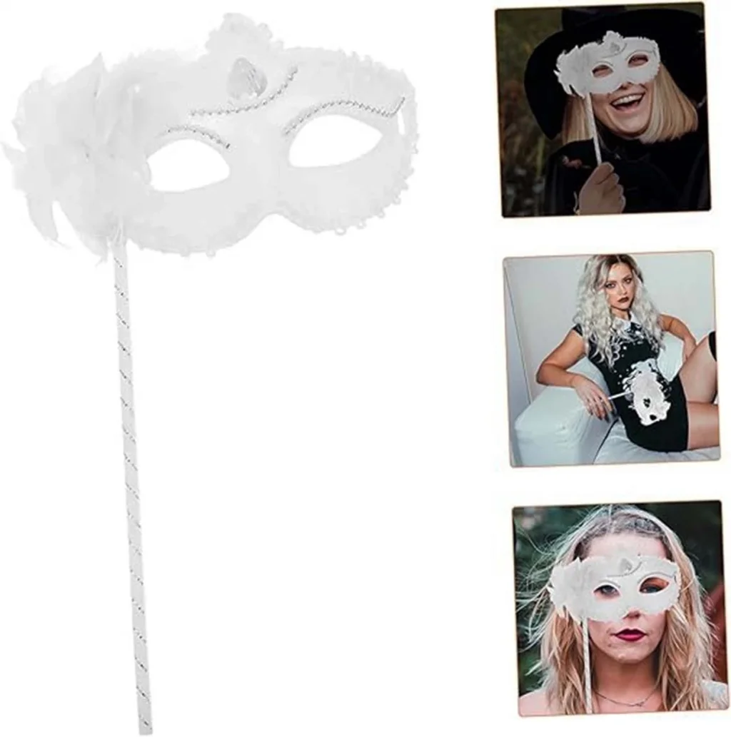 Beyaz ışıltılı tutmalı fotoğraf çekimi maskesi, fotoğraf çekimlerinize eğlence ve ışıltı katacak harika bir aksesuardır. Bu maske ile unutulmaz anılar biriktirebilir ve fotoğraflarınızı daha özel hale getirebilirsiniz.
