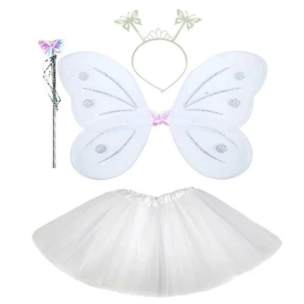 BUĞZ Beyaz Kelebek Kostümü - Beyaz Kelebek Kostüm Aksesuar Seti 4 Parça