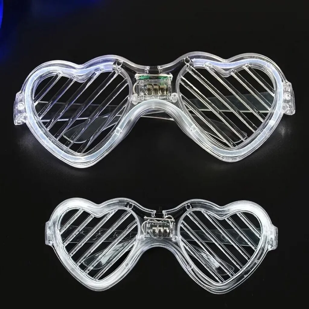 BUĞZ Beyaz LED Işıklı Kalp Gözlük – 3 Modlu Parti & Glow Gözlüğü