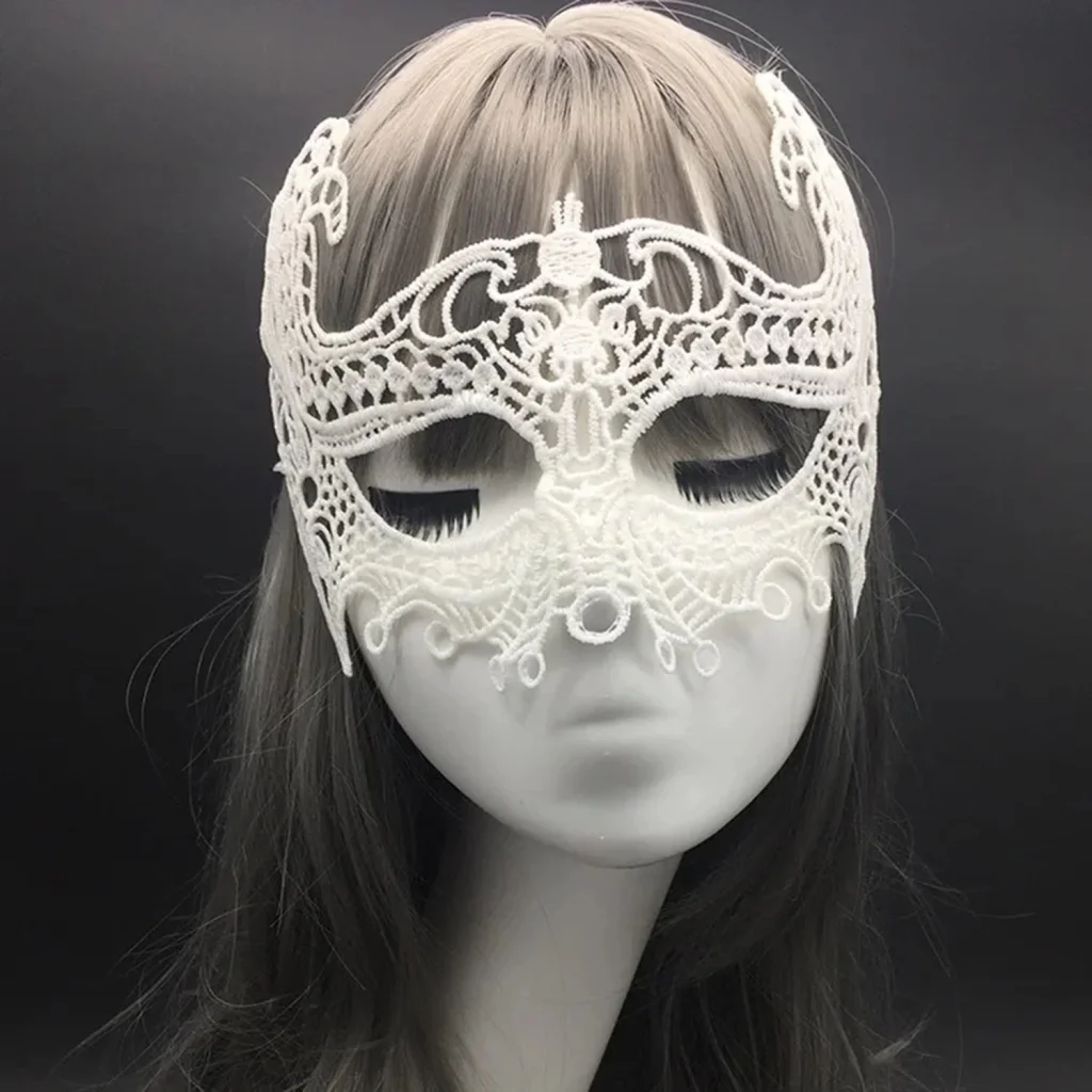 Beyaz Renk Dantel Kesim Dantel İşlemeli Balo Parti Maskesi, balo, parti veya özel bir gece için gizemli ve şık bir görünüm oluşturmak isteyenler için ideal bir üründür. Zarif dantel kesimi ve beyaz rengi ile göz alıcı bir stil sunar.