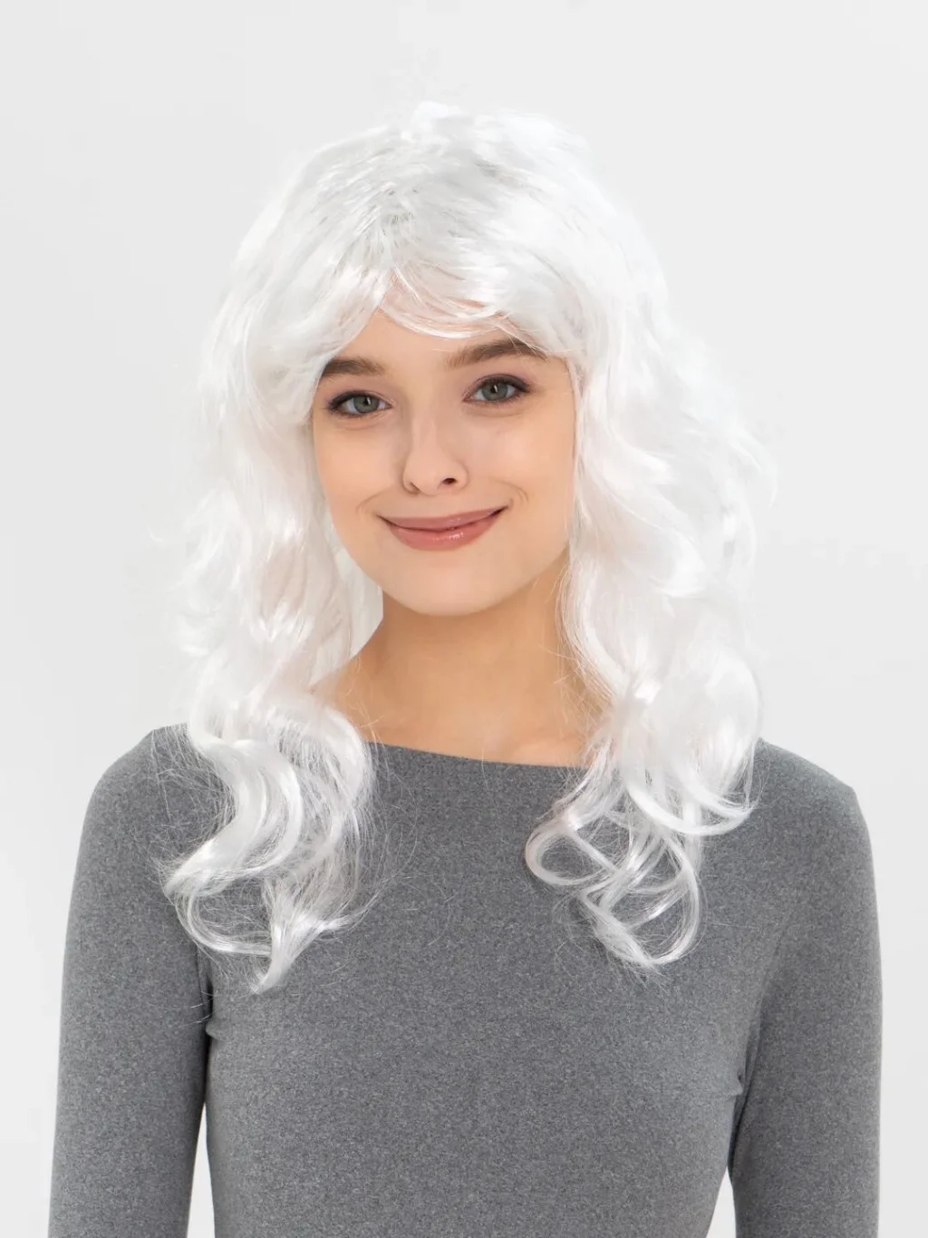 BUĞZ Beyaz Renk Uzun Düz Parti Peruğu