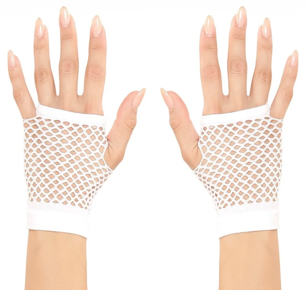 Karnaval ve cadılar bayramı kostümünüze orijinal bir dokunuş katacak kısa beyaz örgü eldivenler | Görünümünüzü bu 11 cm beyaz örgü eldivenlerle tamamlayın