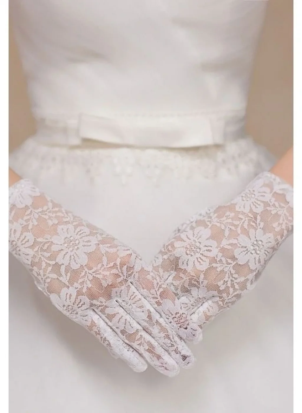 BUĞZ Beyaz Renk Kısa Dantelli Eldiven