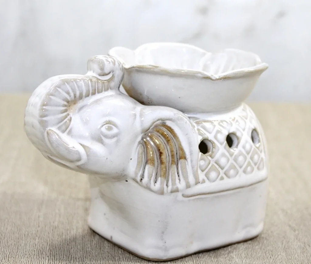 BUĞZ Beyaz Seramik Filli Buhurdanlık
