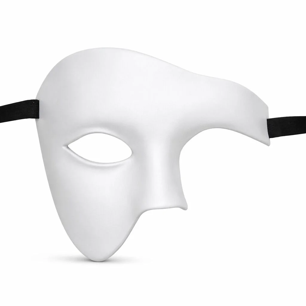BUĞZ Beyaz Yarım Erkek Maske – Phantom Parti & Balo Maskesi