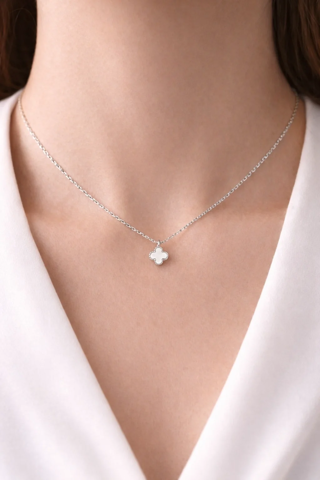 Beyaz Yonca Figürlü Çelik Kolye MODEL 17 – Kararmaz, Paslanmaz, Minimal & Şık Kadın Kolyesi Zarafeti sadelikle buluşturan beyaz yonca figürlü çelik kolye, günlük kombinlerden özel davetlere kadar her stile uyum sağlar. Minimal tasarımı sayesinde tek başına şık bir duruş sunar, katmanlı kolyelerle birlikte kullanıldığında ise modern bir görünüm oluşturur. Paslanmaz çelik yapısı sayesinde kararma yapmaz, uzun süre ilk günkü parlaklığını korur. Hassas ciltler için uygundur ve günlük kullanımda rahatsızlık vermez. Beyaz yonca detayı, şıklığın yanı sıra zarif ve anlamlı bir dokunuş sunar. Şık takı kutusunda gönderilmesi sayesinde hediye olarak da mükemmel bir tercihtir. Doğum günü, Sevgililer Günü, yıl dönümü veya kendinizi şımartmak için ideal ?? Öne Çıkan Özellikler