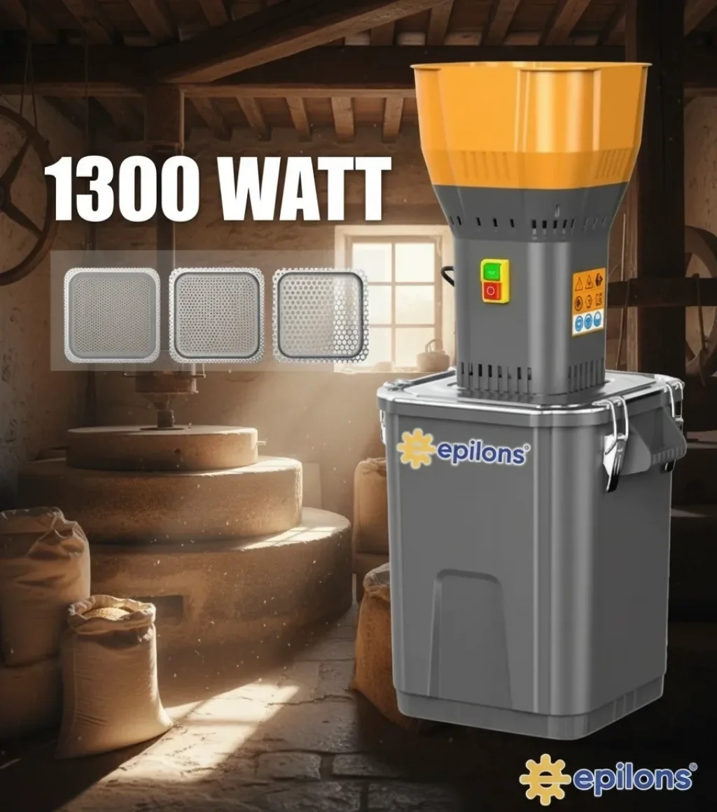 Epilons 55L 1300 w Profesyonel Tahıl Yem Öğütücü – 9 Paslanmaz Elek Hediyeli