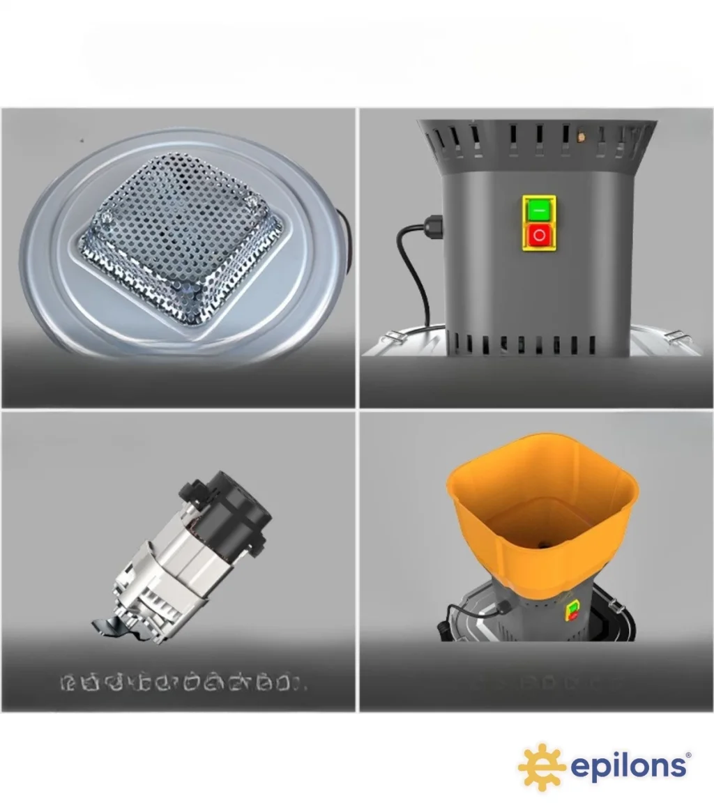 Epilons Pro elektrikli tahıl öğütücü, evden küçük ölçekli ticari mutfağa kadar her ortamda maksimum verim ve uzun ömür sunar. Güçlü 1300 W motoru ve paslanmaz çelik bıçak-granül diski; buğday, mısır, nohut, baharat, kahve ve daha pek çok kuru besini dakikalar içinde un, irmik, baharat tozu veya iri taneli granüllere çevirir. Tek tutam düğme ile 0,6 mm’den 8 mm’ye kadar dört farklı ayarda hassas kontrol sağlar. Kolay temizlenen modüler tasarım, ergonomik taşıma kulpları ve güvenlik kilidi; hızlı montaj-demontaj, basit bakım ve kullanıcı dostu deneyim garantiler.