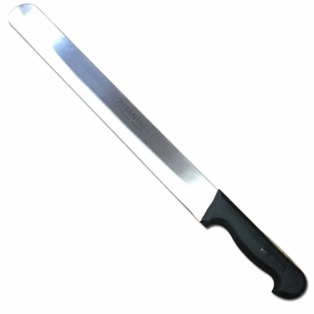 Bu ürün, özellikle salam ve diğer et ürünlerini ince ve düzgün bir şekilde dilimlemek için ideal bir bıçaktır. Paslanmaz çelikten yapılmış ince kesim kenarı ve ergonomik plastik sap, hem dayanıklılığı hem de konforu ön planda tutar. 35 cm uzunluk, geniş dilimleme işlemleri için uygundur ve plastik sap, rahat bir kullanım deneyimi sunar.
