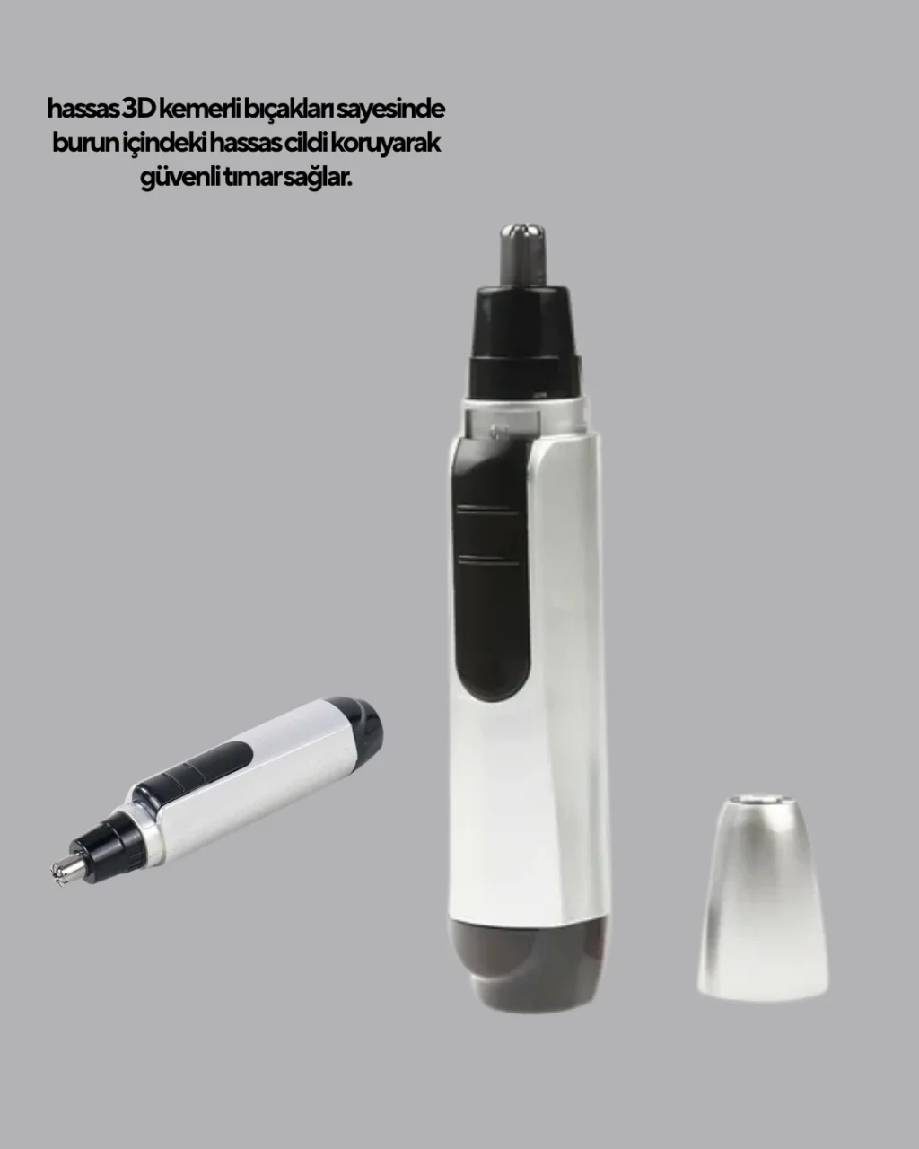 Kişisel bakımınızı her yerde kolayca yapmanızı sağlayan 3D Bıçaklı Burun ve Kulak Tıraş Makinesi, hassas bölgelerde güvenli kullanım için özel olarak tasarlandı.Paslanmaz çelik 3D kemerli bıçak sistemi, burun ve kulak içi gibi zor erişilen alanlarda tahriş etmeden tıraş imkânı sunar.Açık kesim yapısı sayesinde tüyler farklı yönlerden kolayca alınır ve pürüzsüz bir sonuç elde edilir.Kompakt tasarımı ile elinize rahatça oturur, kaymaz yapısı güvenli tutuş sağlar.Seyahatlerde yer kaplamaz, günlük kullanımda ise daima hazırdır.1 adet AA pil ile çalışır (pil kutuya dahil değildir) ve kablo gerektirmeden her ortamda pratik kullanım sağlar.Kolay temizlenebilir başlığı sayesinde hijyenik kullanım mümkündür.Su altında yıkanabilir başlık, uzun ömürlü ve dayanıklı performans sunar.Bu kişisel tıraş makinesi, erkeklerin ve kadınların günlük bakımını pratik hale getirirken, konfor ve güvenliği aynı anda sunar.Hızlı, taşınabilir ve etkili — kişisel bakımda yeni standart!