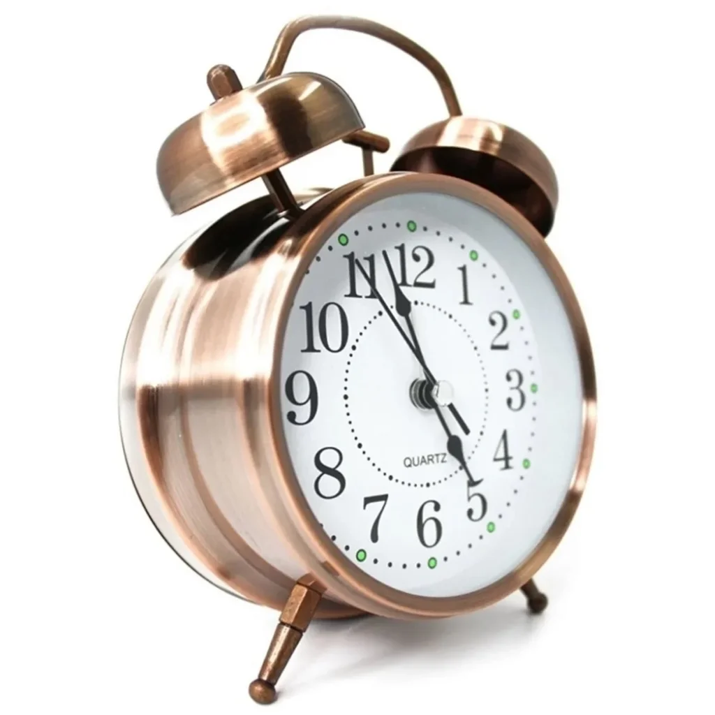 Büyük Masa Saati, Alarmlı Masa Saati, Saat, Dekoratif Masa Saati, Büyük Bakır Metal Saat Ölçüsü: 17 cm x 12 cm
