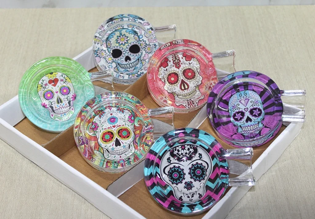 CAM PURO KÜLLÜK MODEL 1Ürün ÖzellikleriBu cam puro küllük, renkli kuru kafa baskılarıyla tasarlanmış şık bir dekoratif objedir. Puro severler için özel olarak tasarlanmış bu küllük, dayanıklı cam malzeme ile üretilmiştir ve zarif tasarımı ile dikkat çeker. Herhangi bir masa ya da sehpa üzerinde estetik bir görünüm sağlar.Paket İçeriği1 Adet Cam Puro Küllük Model 1