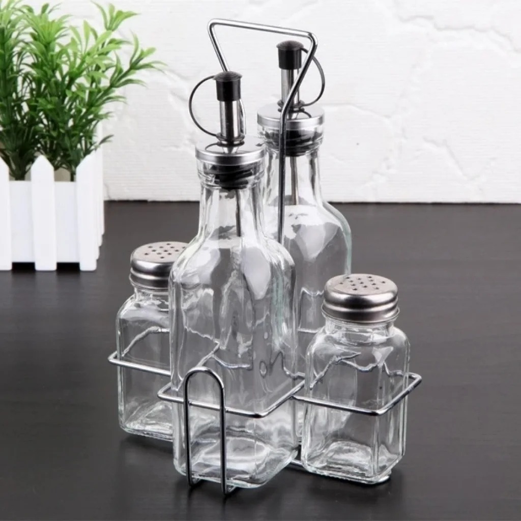CAM YAĞLIK VE SİRKELİK SETİÜrün ÖzellikleriŞık ve kullanışlı tasarımıyla mutfakların vazgeçilmezi olan Cam Yağlık ve Sirkelik Seti, sofralarda ve yemek hazırlıklarında düzeni sağlamak için mükemmel bir seçimdir. Set içerisinde cam malzemeden üretilmiş yağlık ve sirkelik şişeleri yer alır. Paslanmaz metal kapakları sayesinde uzun süreli kullanım sunar ve dökülmeyi önleyen akıtmaz ağız yapısı sayesinde pratik bir kullanım sağlar.Cam şişeler, hem yağ hem de sirke için ideal kapasiteye sahiptir ve camın şeffaf yapısı sayesinde içerisindeki ürün miktarını kolayca görebilirsiniz. Sağlam metal taşıma standı, ürünlerin düzenli durmasını ve kolay taşınmasını sağlar. Şık tasarımı sayesinde mutfak tezgahlarında veya sofralarda dekoratif bir görünüm sunar.Bu set, hem ev kullanımı hem de restoran, kafe gibi profesyonel mutfaklar için idealdir. Temizlemesi kolay, hijyenik ve uzun ömürlü yapısıyla kullanıcıya konfor sağlar.Paket İçeriği1 adet Cam Yağlık Ve Sirkelik Seti