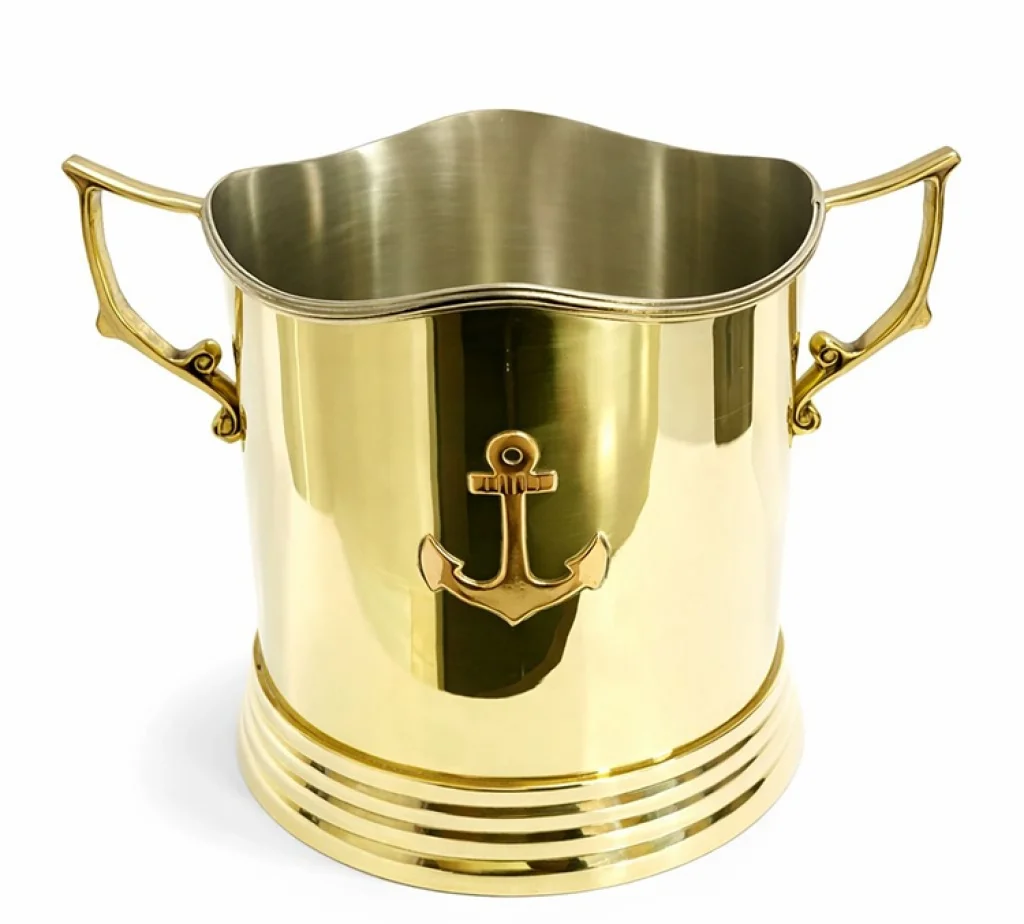 ÇAPA DESENLİ PİRİNÇ BUZ KOVASI Ürün ÖzellikleriSofralarınızda ve bar köşelerinizde denizlerin asaletini hissettirmeye hazır olun! Çapa Desenli Pirinç Buz Kovası, yüksek kaliteli parlak pirinç malzemeden üretilen görkemli yapısıyla mekanınıza elit bir hava katar. 17x20 cm boyutlarındaki bu özel kova, ön yüzünde yer alan ince işlenmiş çapa kabartması ile denizci (nautical) temasını en şık şekilde yansıtıyor. Her iki yanında bulunan zarif tutma kulpları, buz kovasının hem taşınabilirliğini kolaylaştırır hem de nostaljik tasarımını tamamlar. Altın sarısı pirincin parıltısı, lüks davetlerinizde ve şık akşam yemeklerinizde göz alıcı bir odak noktası oluşturur. Sadece bir buz kovası değil, aynı zamanda dekoratif bir saksı veya şampanya kovası olarak da kullanabileceğiniz bu pirinç obje; deniz tutkunları, yelkenciler ve antika meraklıları için mükemmel bir lüks hediye seçeneğidir. Zamansız tasarımı ve dayanıklı metal yapısı sayesinde nesiller boyu kullanılacak bir prestij parçasıdır.Ürün Teknik ÖzellikleriÖzellikAçıklamaÜrün AdıÇapa Desenli Pirinç Buz KovasıBoyutlar17 cm (Yükseklik) x 20 cm (Genişlik)MalzemeYüksek Kaliteli Parlak Masif PirinçTasarımMarin Temalı (Çapa Kabartmalı ve Çift Kulplu)StilNostaljik, Denizci, Prestijli DekorasyonKullanım AlanıBar Aksesuarı, Sofra Sunumu, Dekoratif SaklamaBakımNemli bezle temizlenmesi ve kurulanması önerilirPaket İçeriği1 Adet Çapa Desenli Çift Kulplu Pirinç Buz Kovası