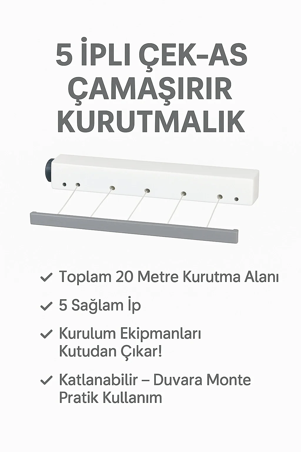 Çek As Ger As 5 İpli 20 Mt, evinizdeki çamaşırlarınızı düzenlemenize yardımcı olacak pratik bir üründür. Ürünün özellikleri şunlardır: